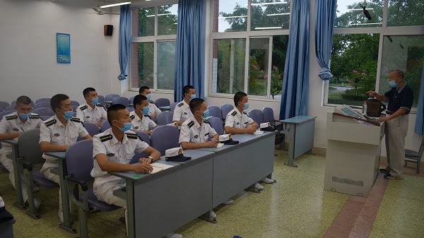 “没有党就没有现在,没有党就没有你我今天的生活,没有你们的新制服穿!”看着海军士官生洁白的制服,老人感叹到,“你们现在坐在亮堂的教室里,我们那时候……啥都没有,希望你们把本事学到家,你们在座的每一位同志都是一块玉,要把自己雕琢成为部队的栋梁,国家的栋梁。” 老人回忆着,仿佛一切都历历在目,“当时台湾反动派经常派他们的蛙人部队过来搞破坏,暗杀我们的哨兵,他们装备好啊,我们很难发现,夜里摸上来,一刀就把咱们的哨兵捅喽,然后潜伏到内地去搞破坏。”老兵说起台湾蛙人的凶残、顽固,也是记忆犹新。谈到当年与反动派作战的经历,老兵仍激动不已。
