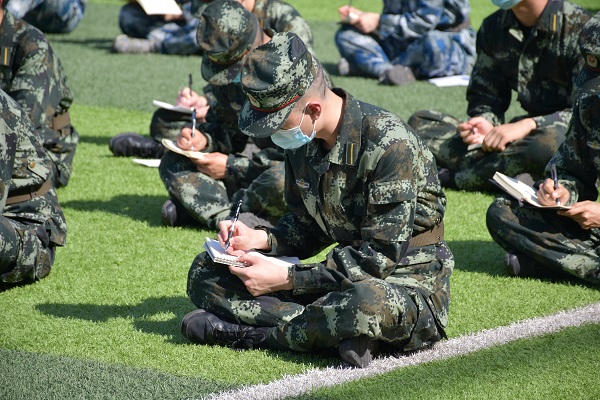 在阳光的映射下,政委任丹首先强调了四会对于士官生的重要性,并希望认真训练,为下学期的学弟们做出更好的榜样。负责人张崇银为学员们讲解四会教学的框架,指正示范班演示教学的错误所在,要求学员们日后训练中针对错误加强整改。负责人黄渊为学员们讲解了“会做、会讲、会教、会做思想工作”的四会含义,要求每个人都要有大局观念、作业实施方法以及整个训练内容的框架。最后负责人张崇银进行了分军种制的编班训练。学员们在讲解中认真听讲并做笔记,在长达30分钟的军姿训练中无人退出。