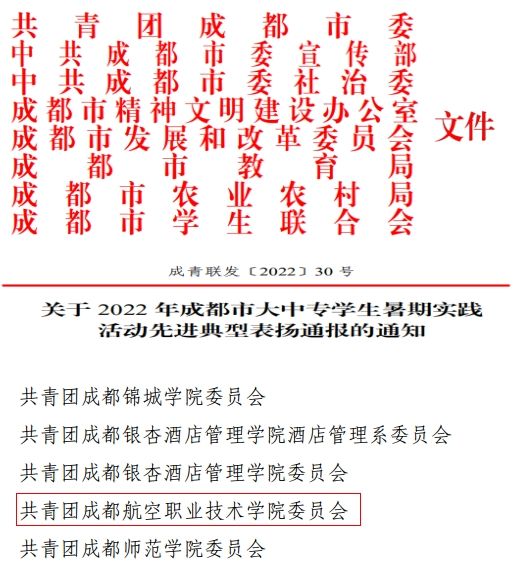 共青团成都航空职业技术学院委员会获评优秀组织单位