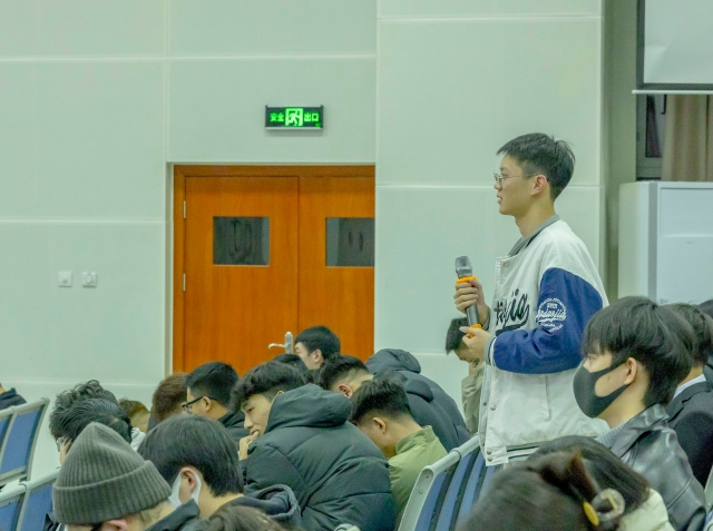 张老师通过《在最美好的时光寻找更美好的自己》、《“职”面人生,梦想在这一刻起飞、》《不躺平,不焦虑》三个主题和同学们探讨了怎样寻找更好的自己。通过现场的互动,张老师更好的了解同学们心里所想,通过思考“我是谁”、“我想成为什么样的人”让同学们认清内心,更好地认知自我,从而做好人生规划,脚踏实地地走好人生每一步。张老师在现场有趣生动的授课方式,赢得了大家的喜爱,同学们踊跃回答问题,现场气氛活跃。