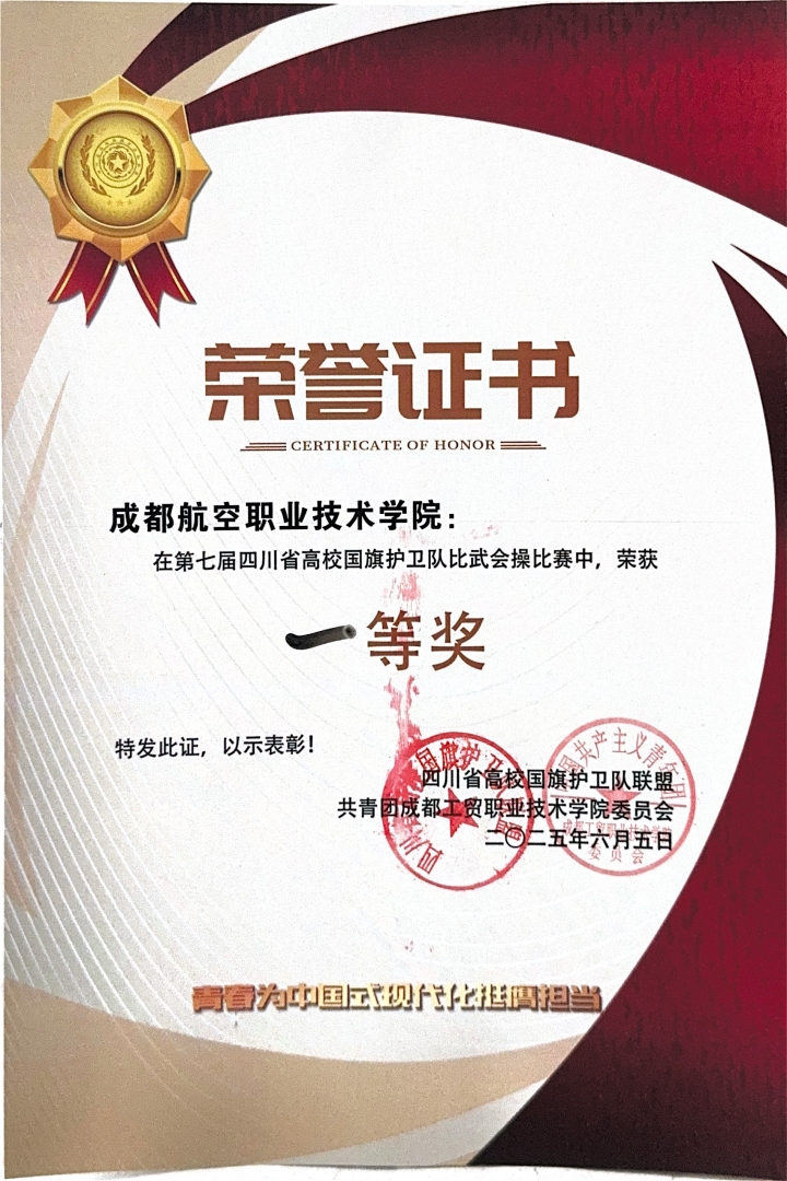 6月5日,2025年四川省高校国旗护卫队会操比武活动在成都工贸职业技术学院圆满落幕。成都航空职业技术学院国旗护卫队在指导老师李鑫带领下,从全省22支参赛队伍的激烈角逐中脱颖而出,以精湛的技艺和卓越的表现勇夺会操比武一等奖,继2023年夺魁后再次捧杯,时隔两年重新登顶省级赛场,用拼搏与汗水诠释青春担当,以实际行动彰显了成航青年的昂扬斗志。