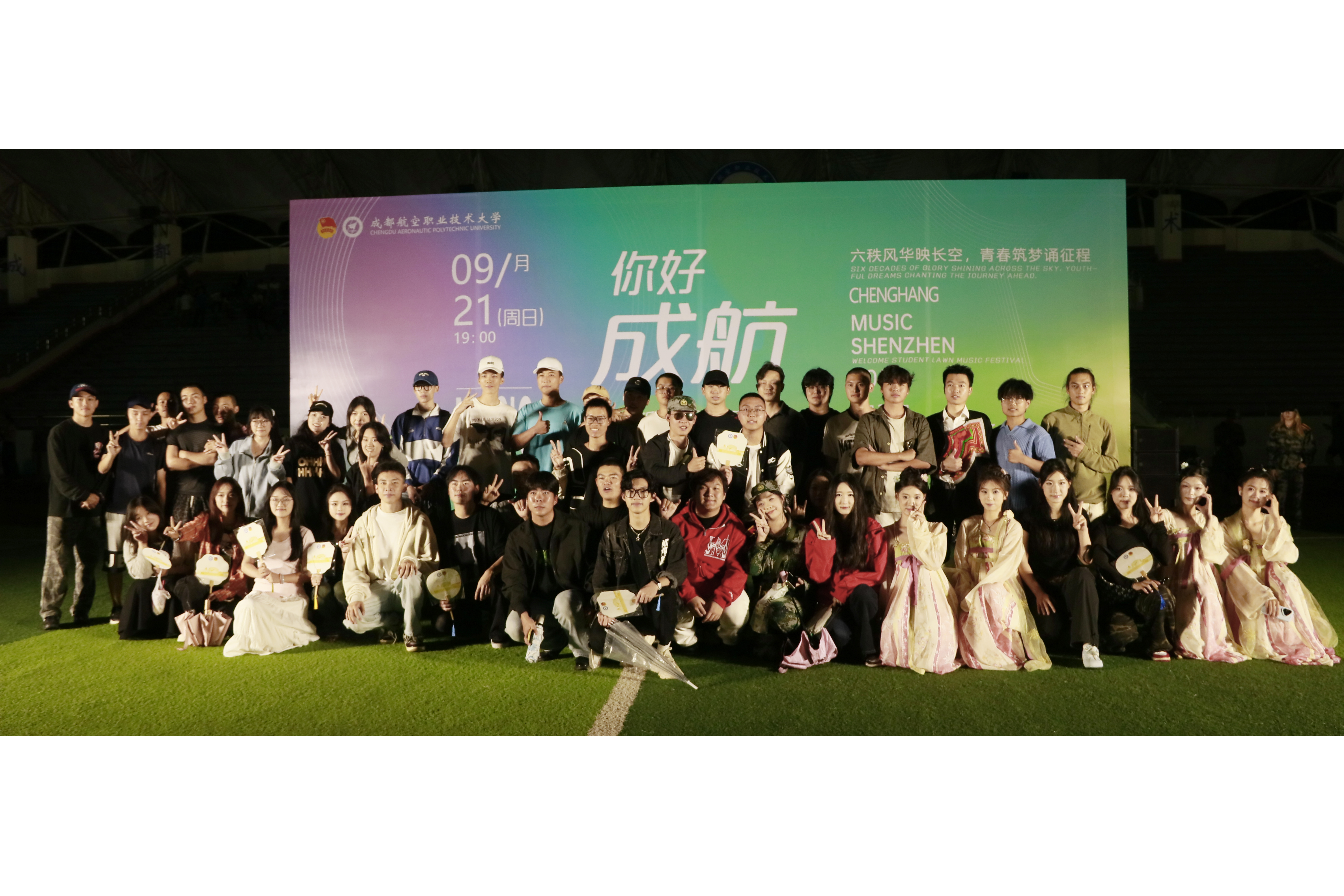 为迎接2025级新生的到来,展现成航六秩校史的深厚底蕴与青春风采,9月21日晚,由校团委、武装部联合指导,校学生会、社团管理部承办,大学生艺术团、歌咏社等多家社团共同参与的“六秩风华映长空,青春筑梦诵征程”迎新草坪音乐会,在龙泉校区第一运动场温情上演。