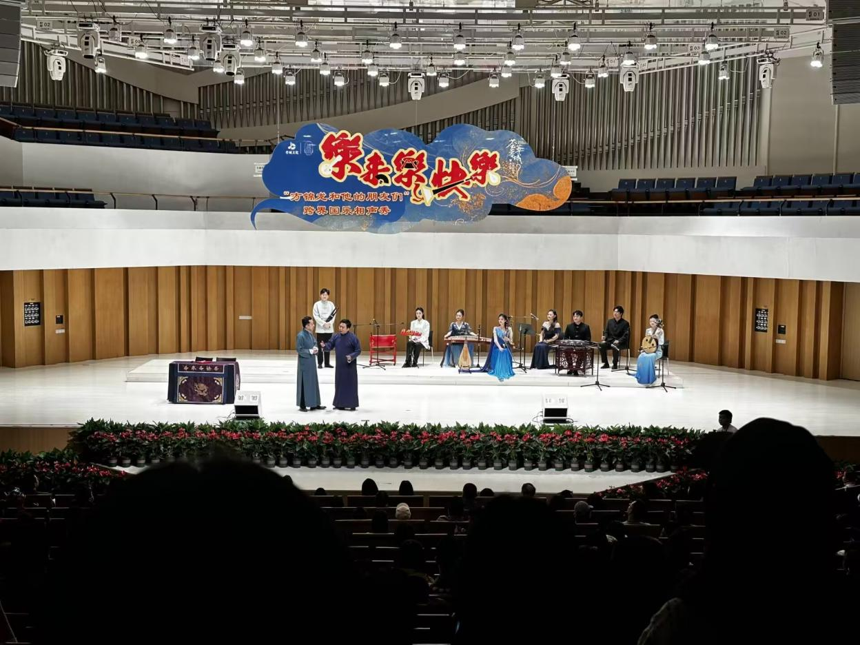 演出在激昂的乐团合奏中拉开序幕,琵琶、扬琴、古筝等民族乐器轮番亮相,瞬间点燃了全场热情。在90分钟的精彩演出中,方锦龙大师以一把五弦琵琶贯通古今,生动再现了国乐的千年演变;李菁、贾旭明等相声名家则巧妙地将《煮酒论英雄》等典故融入包袱,让深奥的民乐知识在阵阵欢笑中变得浅显易懂。整场演出高潮迭起,乐声与笑声交织,掌声经久不息,传统艺术的创新融合赢得了在场师生的高度赞誉。