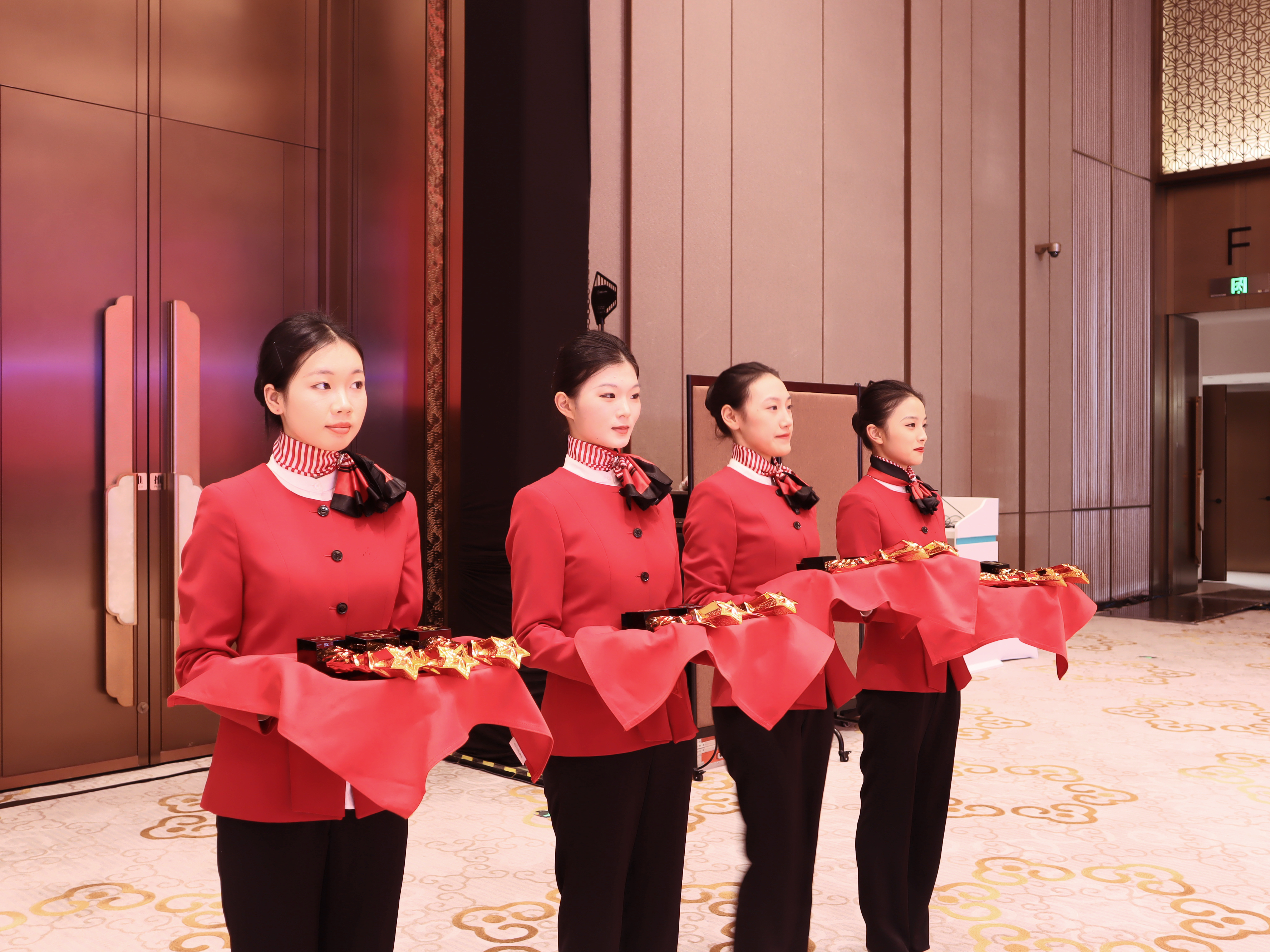 在这场国际盛会中,各志愿者小组各司其职、密切配合,共同铸就了峰会的顺利与精彩。签到组作为“第一窗口”,以高效协作与温暖笑容完成引导、签到、挂牌及资料分发,奠定了峰会专业与温馨的基调;会场组成员遍布各关键点位,既是清晰的“引导员”,也是灵活的“协调员”,确保会议流程无缝衔接;餐饮组以出色协作应对每日1500人次的集中用餐压力,成为峰会可靠的温暖后盾;住宿组则于细节处展现关怀,以细致严谨的服务做好专家学者的“贴心管家”。此外,表演组同学以一支精心编排的古典舞惊艳全场,为科技盛会注入了灵动的人文韵味,而担任晚会主持担任晚宴主持与礼仪的同学则以优雅自信的姿态,充分展现了我校学子的综合素养与青春风采。的同学则以优雅自信的姿态,充分展现了我校学子的综合素养与青春风采。