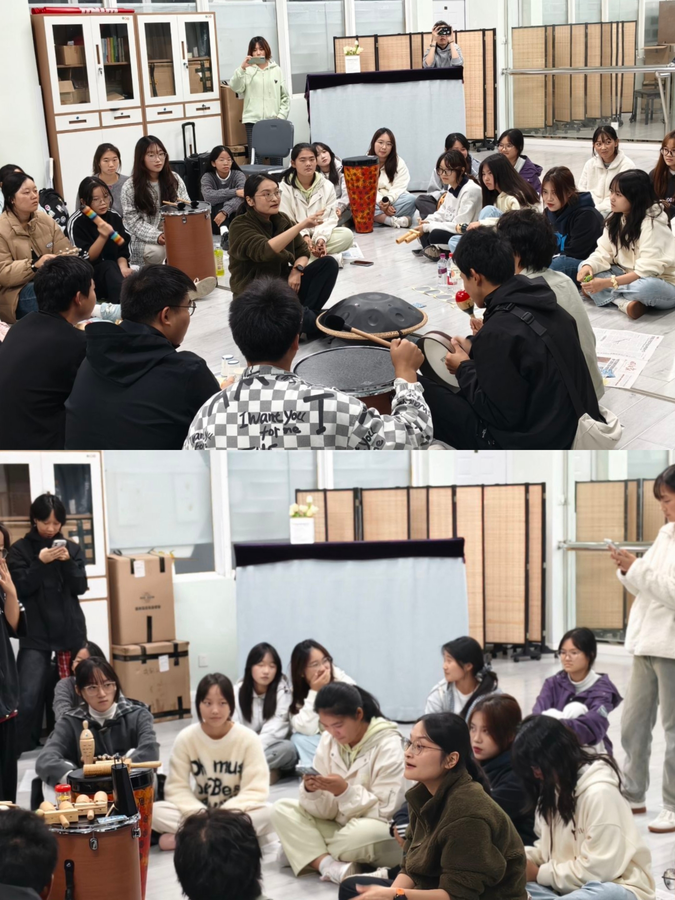 2025年10月30日,成都航空职业技术大学“心动力”青春护航队在龙泉校区二期实训楼505举办了一场别开生面的“鼓‘舞’心声”情绪释放工作坊。作为“怡露前行・青心守护”高校心理志愿服务计划的专项资助项目,本次活动巧妙融合艺术疗愈与心理支持,引导学生在轻松的氛围中,通过身体的律动与节奏释放学业与生活压力,为他们的心理健康注入了一股温暖而强大的力量。