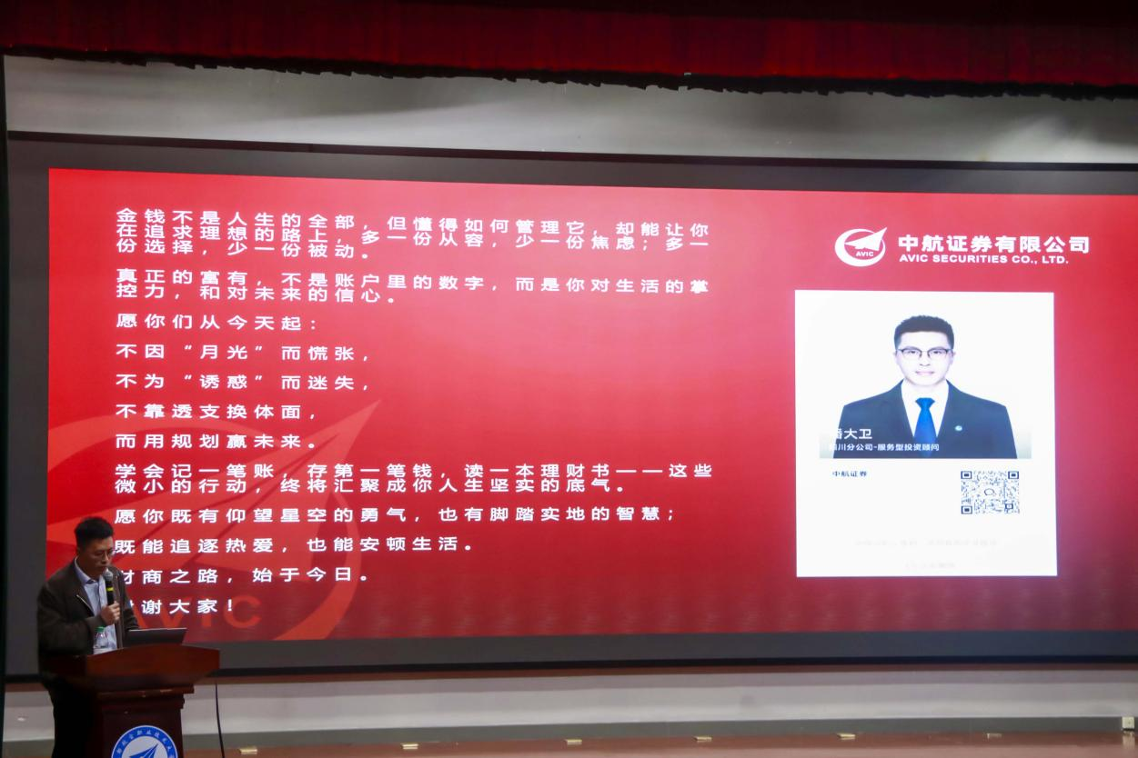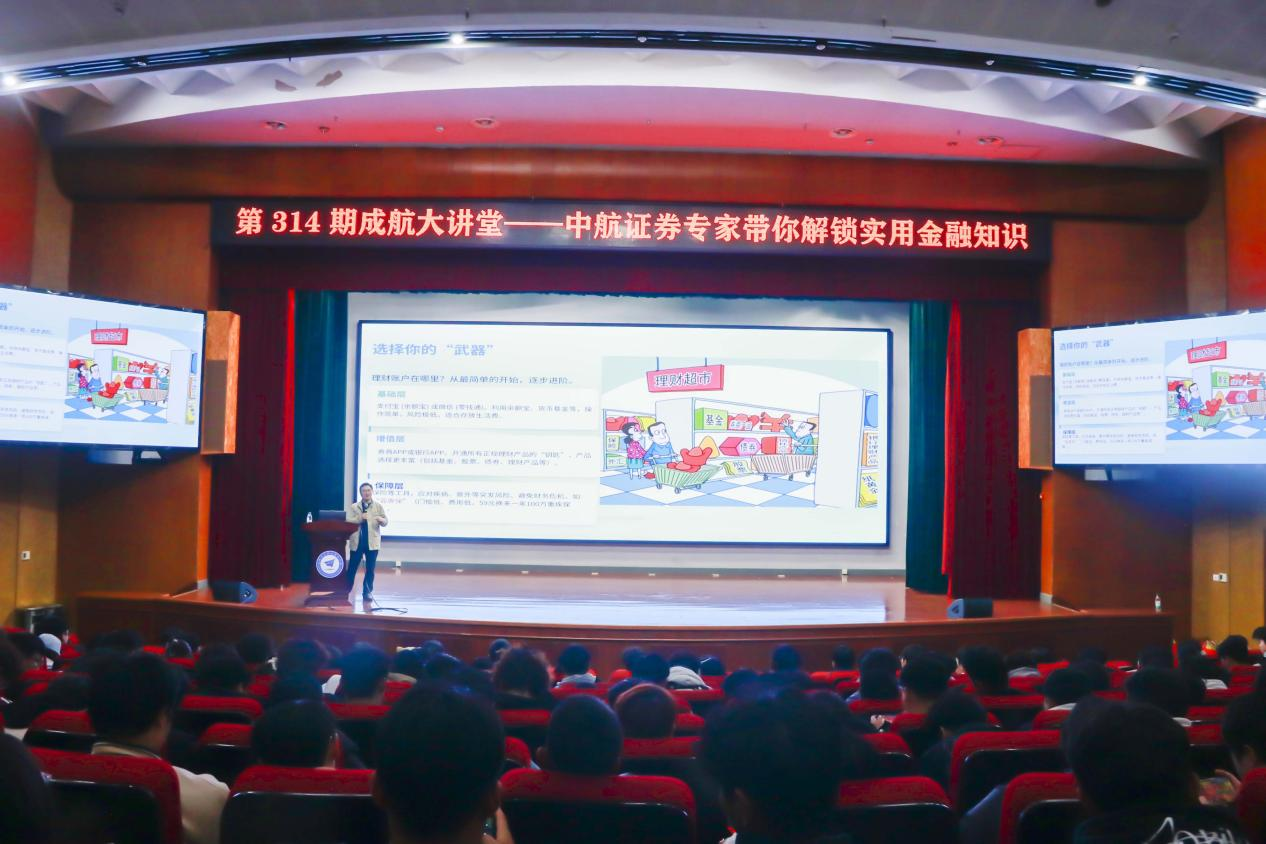 12月2日晚,由校团委主办的第314期成航大讲堂在明德报告厅举行。本期讲堂特邀中航证券四川分公司首席投资顾问陈辉和服务型投资顾问潘大卫作为主讲嘉宾,以“大学生理财基础与ETF工具解析”为主题,贴近学生日常生活,为在场同学系统梳理了理财观念,指点实践路径。