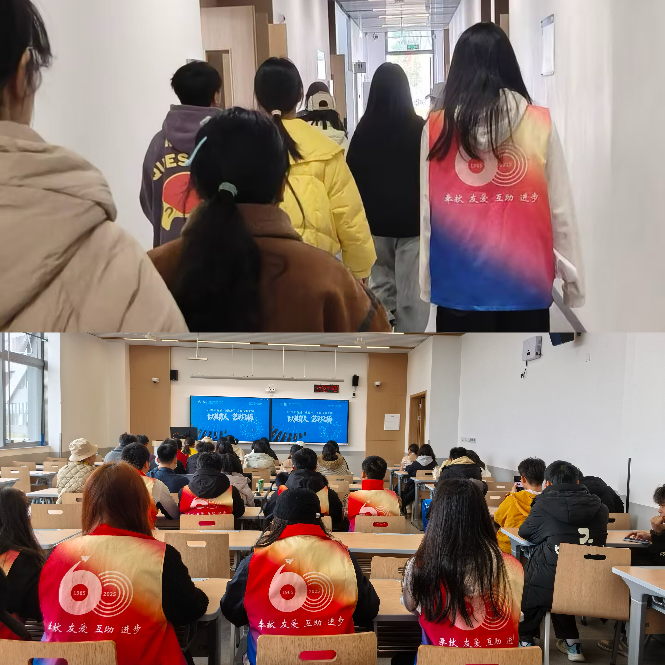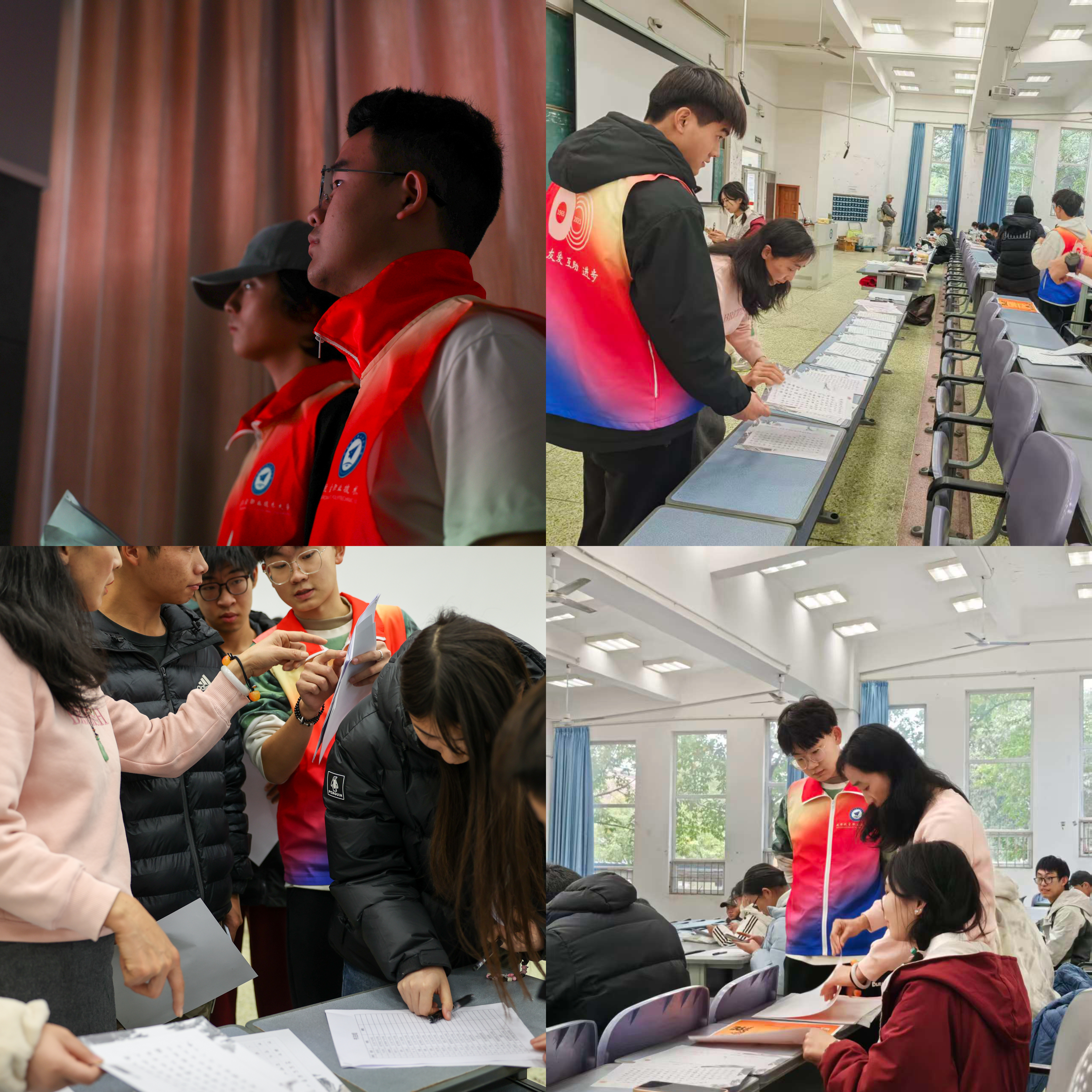 在龙泉校区,声乐器乐类赛事于多功能报告厅、书画类于尚学楼2-117教室双线并行。校区志愿者团队犹如一个高效协同的“全能枢纽”,在两大战场间灵活应对,保障了不同艺术形式的比赛要求。报告厅内,从选手签到叫号、流程引导到秩序维护、协助统分,志愿者们的身影贯穿始终;书画赛场中,他们则化身细致的“艺术助理”,从赛前分发笔墨纸砚、布置场地,到赛中传递作品、维护创作环境,再到赛后严谨收纳每一份心血之作,全程提供静默而周全的支持。尤为值得一提的是“万能机动组”成员,他们随时待命,精准补位,无论是协助评委还是应急处理,均展现出出色的应变与协作能力,确保了从激昂乐章到静谧墨香各个场景转换的无缝衔接。