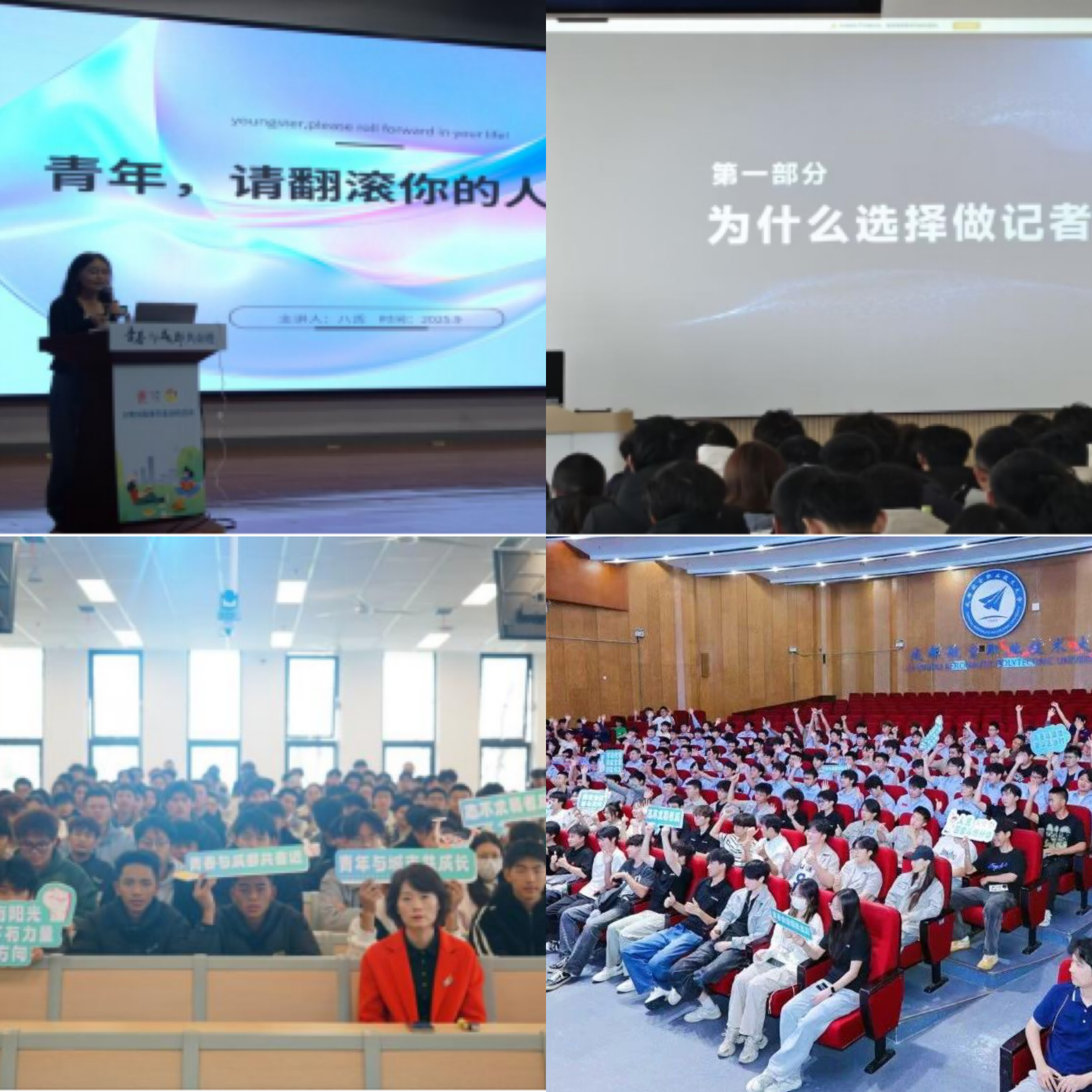 坚持多元引领,绘就职业发展“新图景”。在团委的精心筹划下,四期活动针对不同职业赛道精准发力,邀请多领域榜样现身说法。在龙泉校区专场中,自媒体达人“八舌”分享了从初创到领军的进阶路径,基层榜样邓友梅深情讲述了扎根乡村的奋斗初心;在新都校区专场中,赵岚教授以光影艺术启发职业坐标选择,首席记者张林林通过新闻一线案例诠释职业担当。从新兴产业前沿到基层治理一线,从专业学术领域到社会守望阵地,多元榜样的力量引导成航学子在鲜活故事中提振就业底气,找准个人奋斗与国家发展的“结合点”与“共振点”。