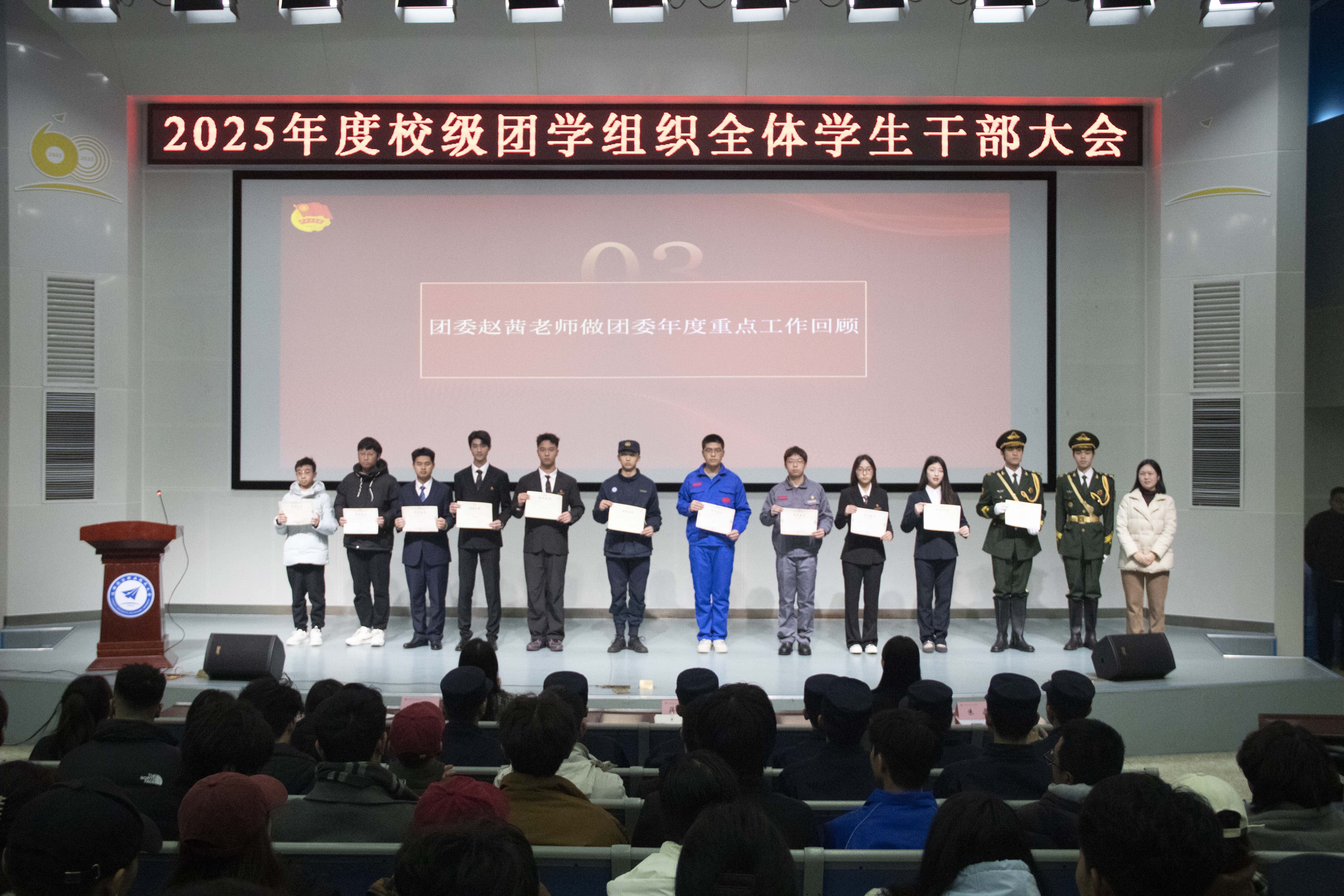 为复盘全年团学工作、表彰优秀榜样力量、凝聚青春奋进合力,12月30日下午,成都航空职业技术大学2025年度校级团学组织全体学生干部大会于龙泉校区博学楼报告厅隆重召开。团委全体老师与团学组织全体成员齐聚一堂,共同回顾团学工作的耕耘与收获,展望未来发展的全新征程。大会由学生副书记张子洋主持。