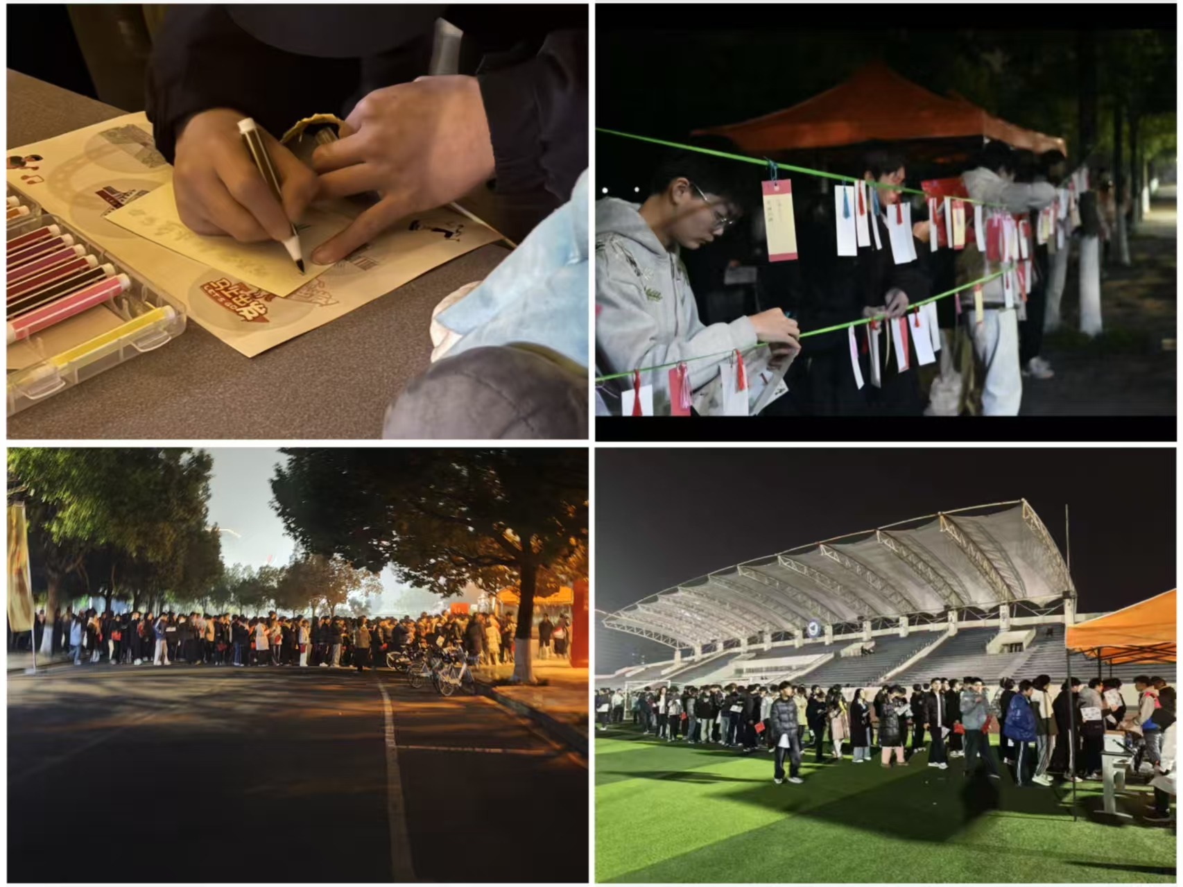 本次夜跑创新设置了六个主题的互动打卡点,将体育锻炼与活动体验深度融合。在“书写新程”点,同学们认真写下新年寄语,悬挂祈福;在“猜灯谜”处,大家开动脑筋,感受传统智慧的魅力;“逐梦同行”考验着搭档间的默契,背对背运送气球往返;“掷响好运”则以沙包投掷,挑战手眼协调;“绘梦成马”鼓励同学们挥洒创意,绘出属于自己心中的骏马;“巧编未来”则让同学们在非遗草编老师的指导下,亲手编织作品,体会匠心传承。每个点位都人气火爆,同学们在完成任务、收集印章的过程中,不仅锻炼了身体,更感受了活动乐趣,寒冷的冬夜校园里洋溢着青春的活力与欢声笑语。