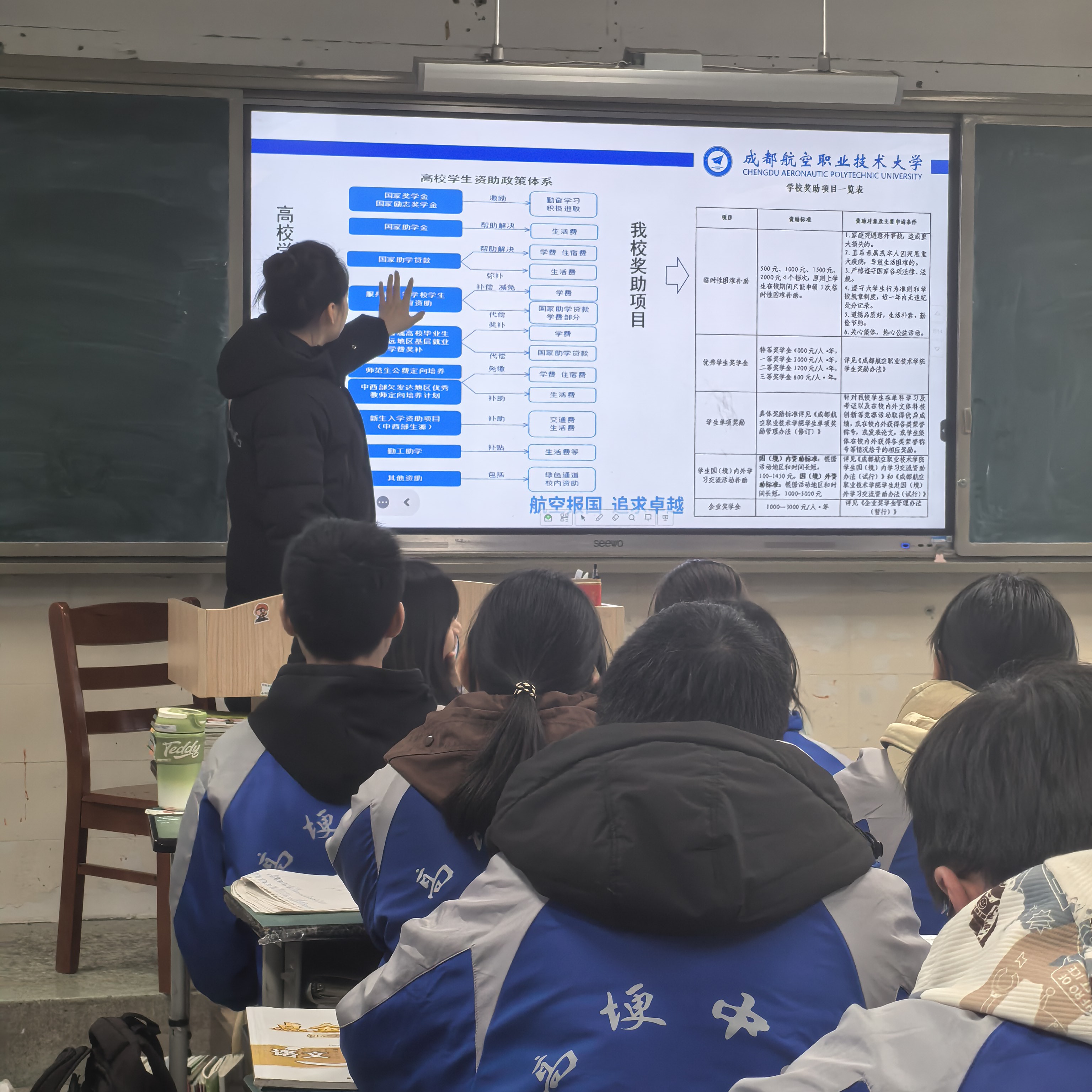 互动环节气氛热烈。许多学生第一次意识到,大学的专业如此生动地与社会服务相连。一位高二学生表示:“原来资助政策不是简单的申请表格,它背后是国家和学校周密的支持网络。学姐的分享让我觉得,大学和未来的梦想,离我更近、更真实了。”邹陈菲的宣讲,不仅传递了政策信息,更以其专业的形象和温暖的互动,在许多学子心中种下了一颗关于蓝天、关于未来的种子。