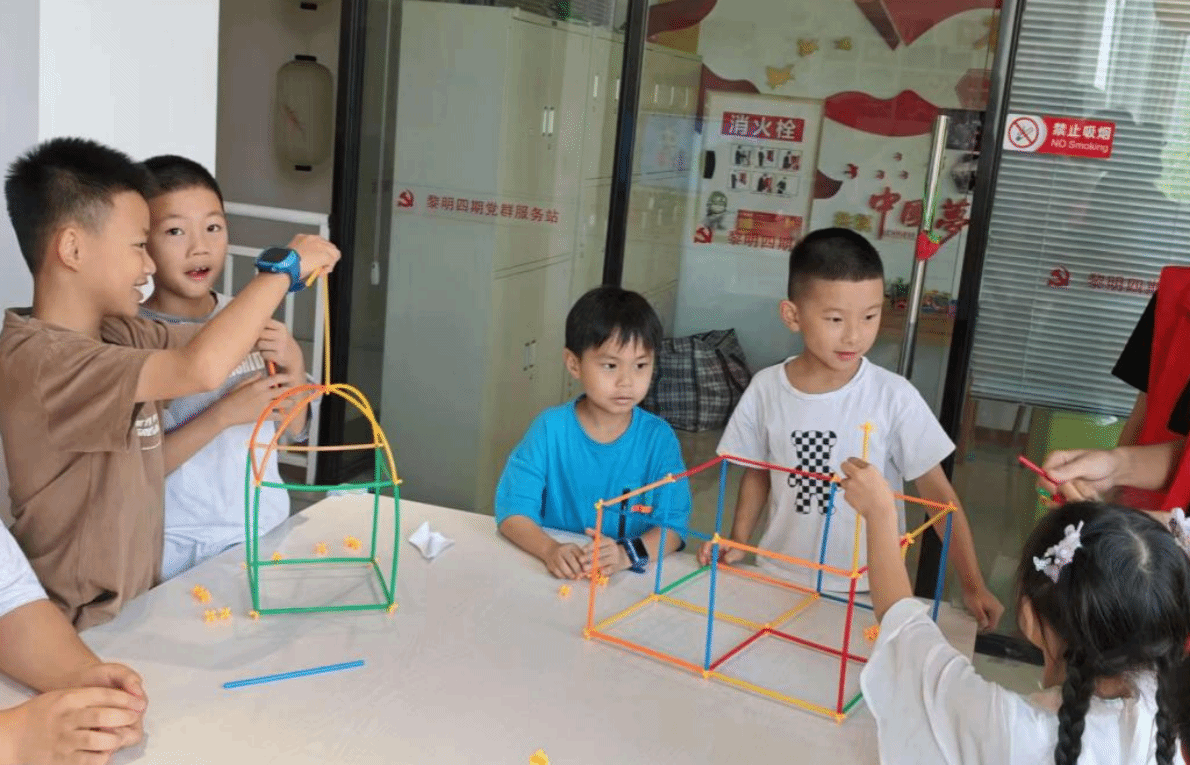 活动高潮是废旧吸管手工制作。在志愿者指导下,孩子们将吸管剪裁、拼接,打造出各具特色的“环保小屋”。活动尾声,孩子们高举作品合影,笑容中满是对环保建筑的憧憬。这场融合知识与实践的活动,不仅让孩子们领略了绿色建筑的魅力,更在他们心中播下了可持续发展的种子。
