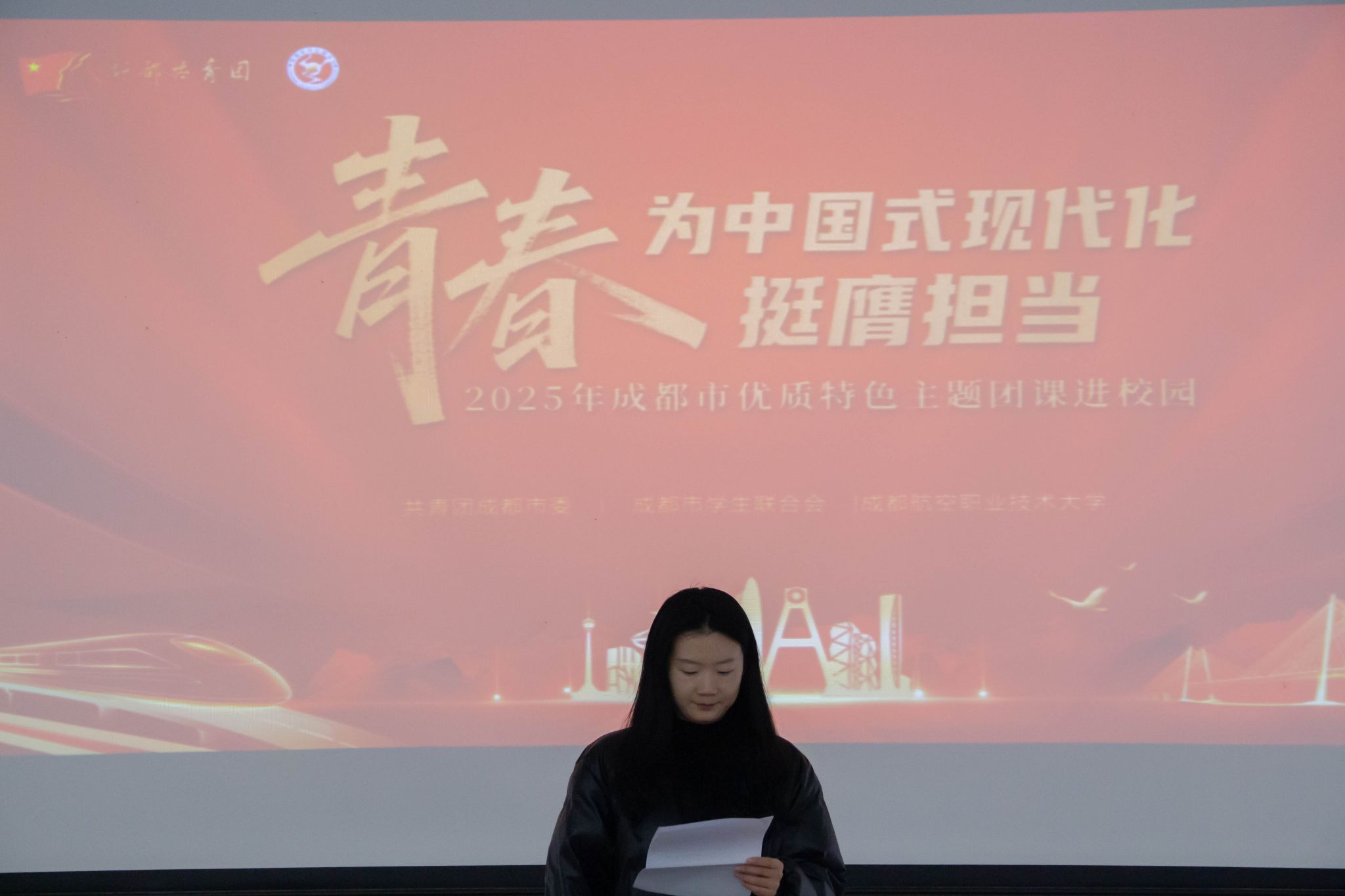 为深入学习贯彻党的青年工作思想,加强团员思想政治教育,提升团组织凝聚力,我院于2025年12月2日下午组织开展“青春为中国式现代化挺膺担当”2025年成都市优质特色主题团课走进校园活动。本次团课特邀四川邮电职业技术学院思想政治理论课专任教师孟秋燕主讲,建筑工程学院学生党支部书记张乐、团总支书记殷玉娟及团员学生代表共同参与。