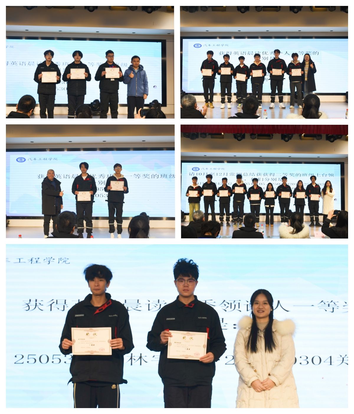 为全面复盘本学期班级常规管理与英语晨读工作成效,表彰先进典型,凝聚奋进力量,2026年1月6日,汽车工程学院召开了2025-2026学年第一学期班级常规与英语晨读工作总结大会。汽车工程学院负责人陈佳,学生工作负责人胡登洲,学生工作室全体老师及各年级班级代表参会,共同见证本学期学风建设与班级管理的丰硕成果。