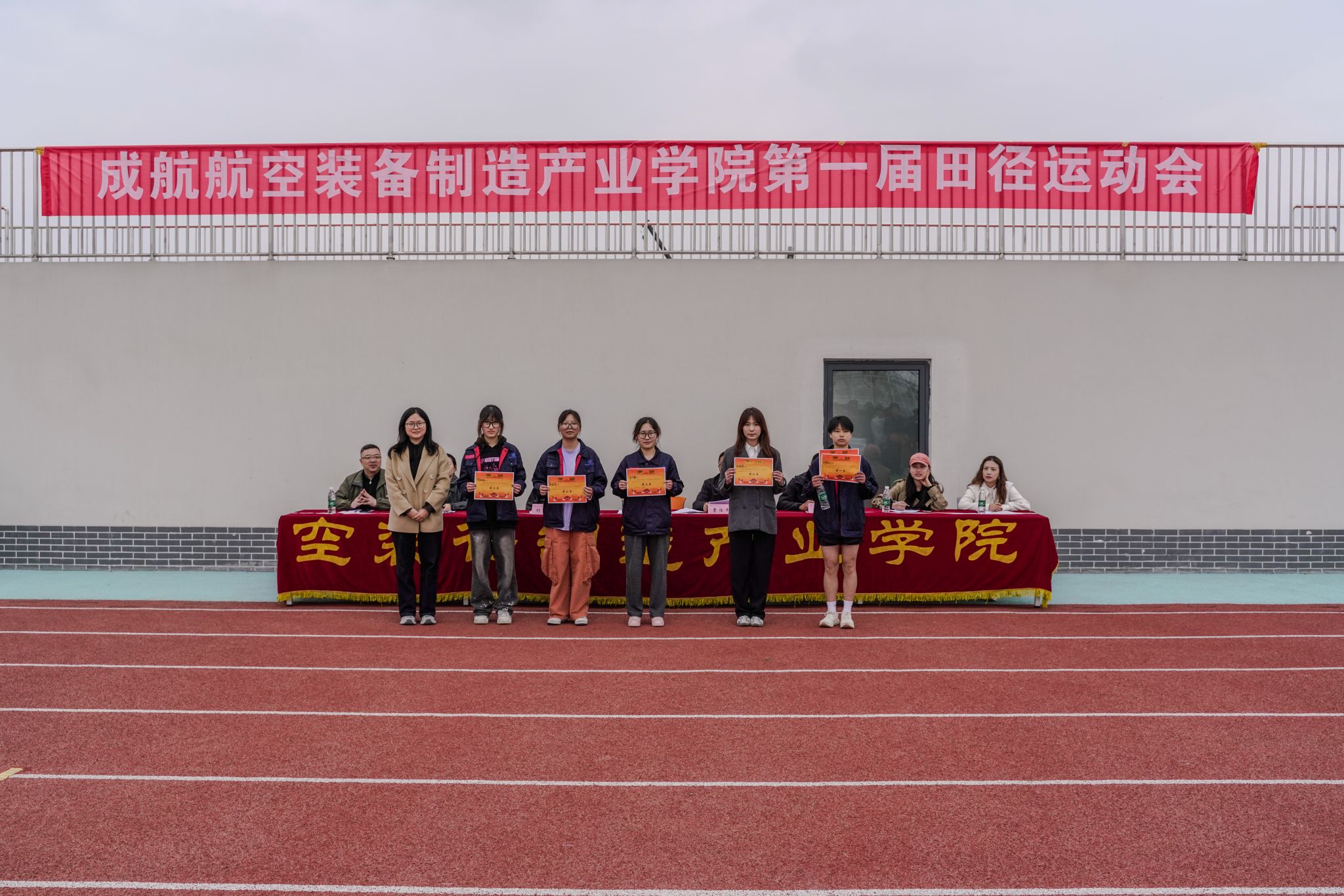 旌旗猎猎,青春飞扬。3月29日,成都航空职业技术大学航空装备制造产业学院第一届田径运动会在新都校区火热启幕。全体大一大二学生齐聚赛场,以昂扬之姿共赴这场活力之约。本次运动会以“五育融合”为引领,深入贯彻落实“健康第一”教育理念,全面展现新时代大学生的蓬勃朝气与拼搏精神。学院党委副书记曹仕平,学生工作负责人范豫鲁、刘智昂,总裁判长——基础教学部体育教研室相昌虎老师及全体专兼职辅导员出席开幕式。