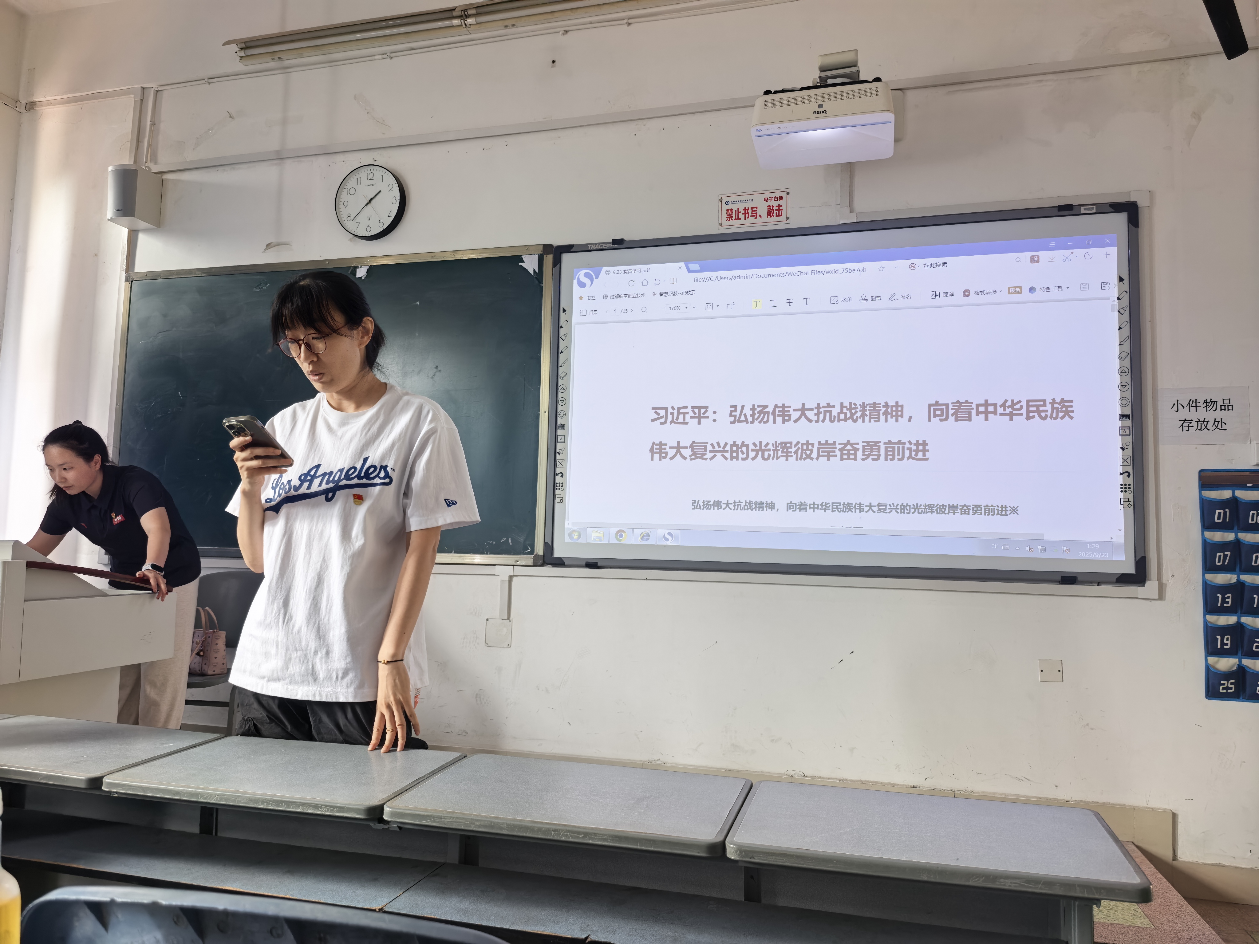 2025年9月23日,在尚学楼102教室,体育教学部第一党支部按照月度学习计划,组织召开9月党员组织学习会议。会议由支部书记赵世赢同志主持,全体党员参与。