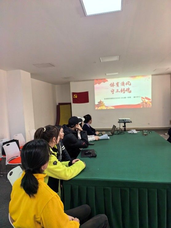 2025年12月16日下午,体育教学部第一党支部以“体育清风 守正铸魂”为主题开展2025-2026学年第一学期专题党课学习,全体党员参会,会议由赵世赢主持。