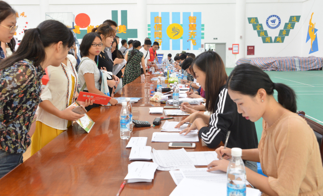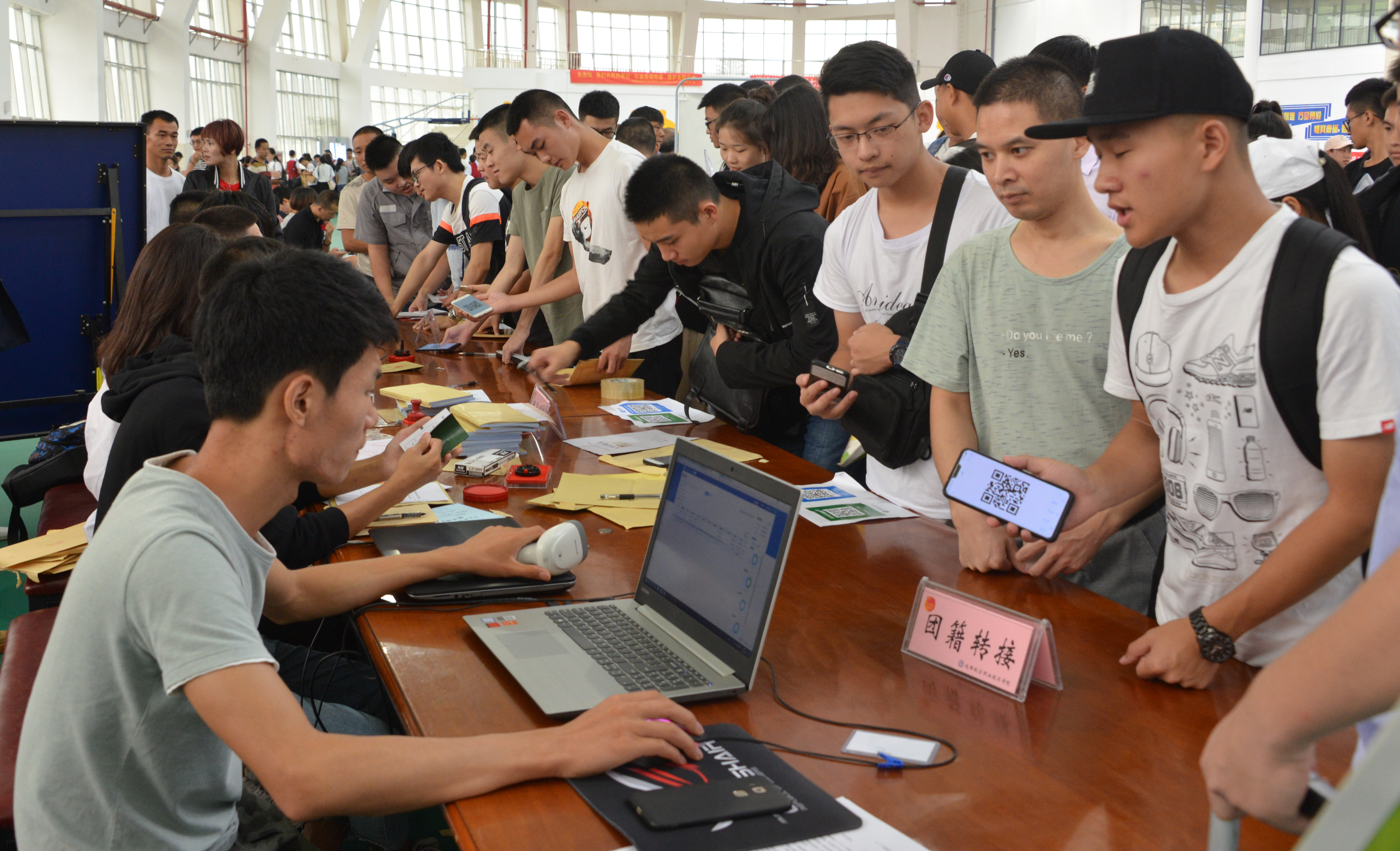 学校在文体馆外按学院设置了9个注册点,在馆内设置了交学费、入学籍、分发床上用品等服务点。大二、大三同学利用课余时间踊跃帮助新生注册引导、行李搬运和校园环境介绍,让新同学们感受到家的温暖。