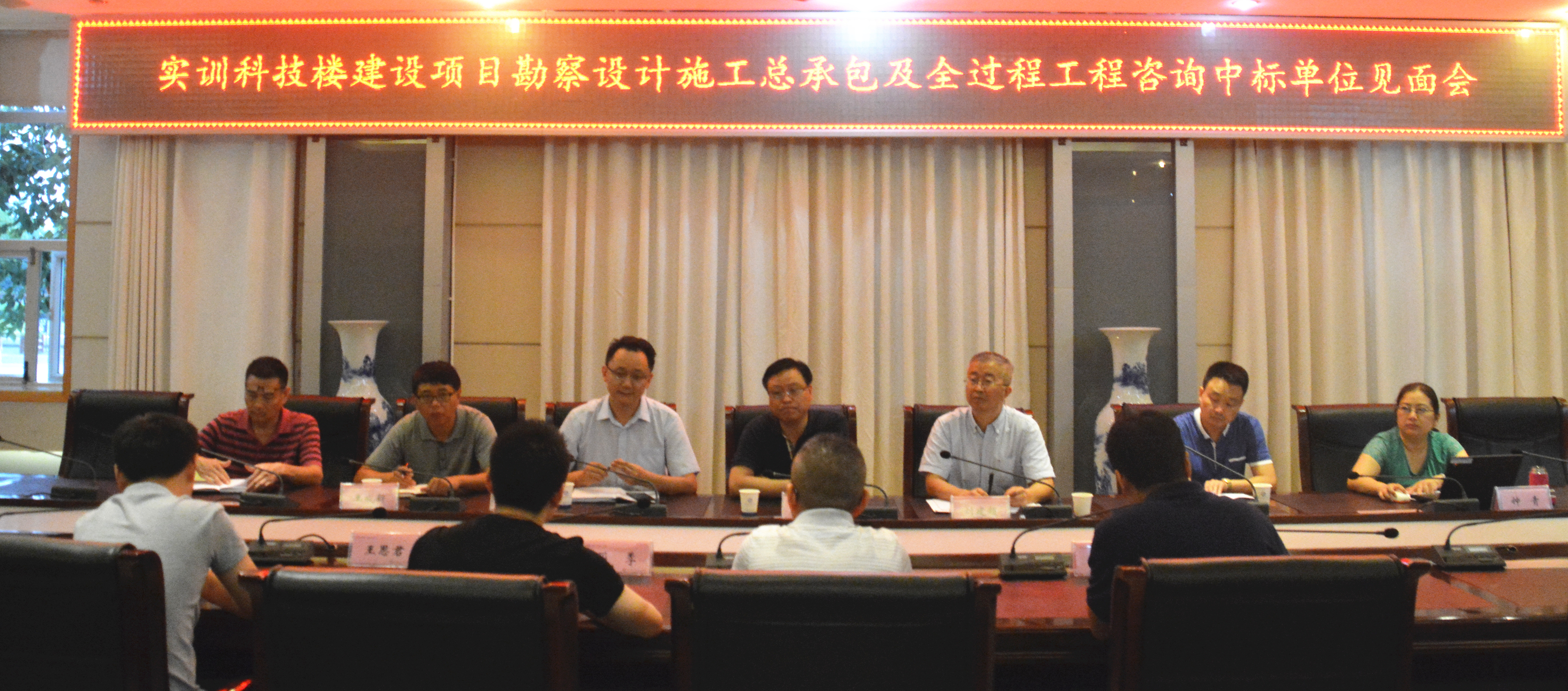2018年9月5日上午10点,成都航院实训科技楼建设项目中标单位见面会在德胜楼第三会议室召开,中标的勘察设计施工总承包联合体(成都市第一建筑工程公司、四川省建筑设计研究院和四川省川建勘察设计院)和全过程工程咨询单位(四川康立项目管理有限责任公司)负责人参加会议。成都航院校长张蕴启、副校长刘建超和纪检监察处、审计处、财务处(国资办)和基建处等部门负责同志出席会议,基建处副处长杨琦主持会议。