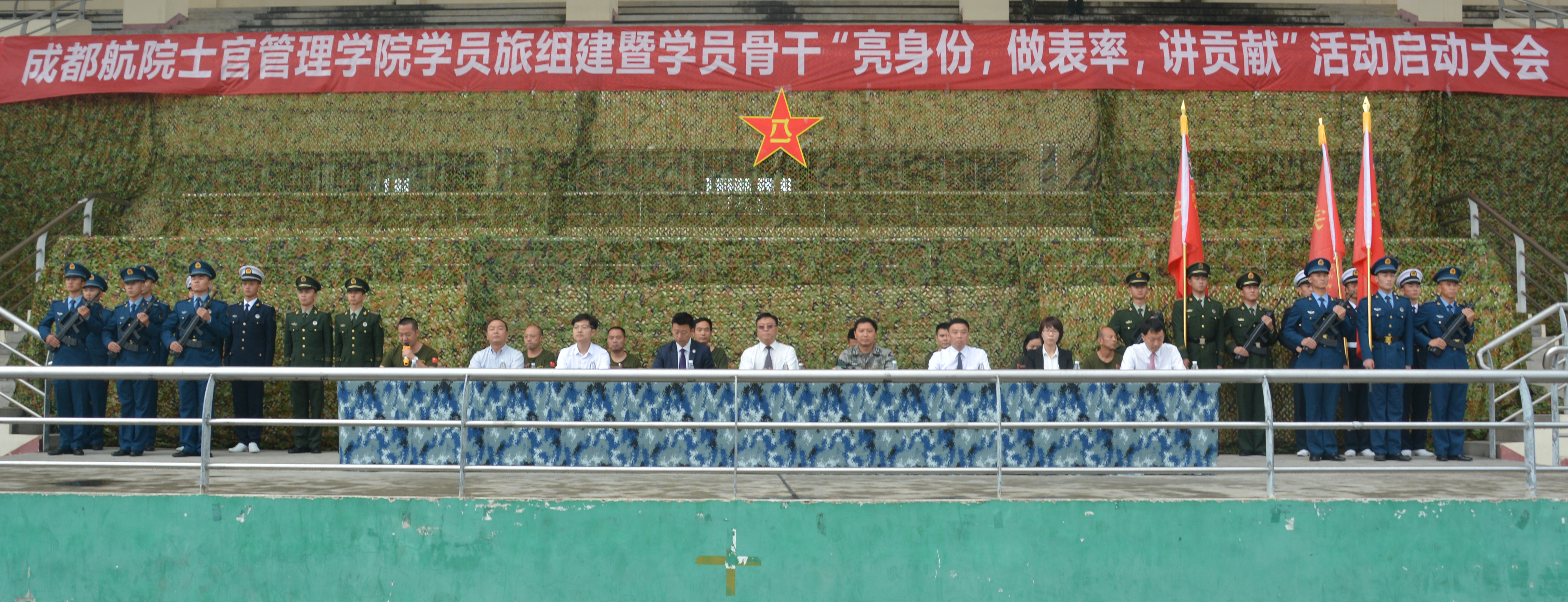 2018年9月9日下午两点,成都航院校长张蕴启、副校长熊熙出席士官管理学院在运动场召开的学员旅组建暨骨干“亮身份、做表率、讲贡献”活动启动大会。士官管理学院学员旅全体教员、学员参加大会。