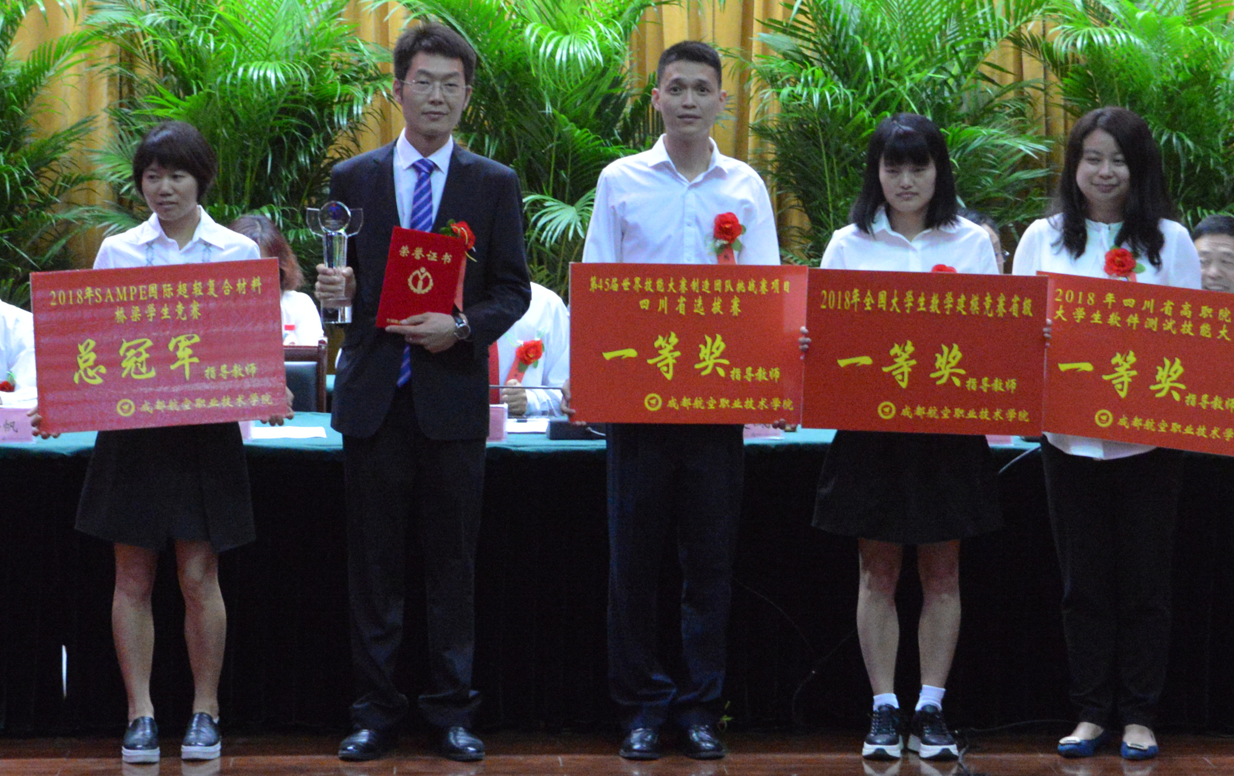 随后,校党委书记杨建国、校长张蕴启等校领导为获得第三批国家“万人计划”教学名师的邱寄帆教授、第十二批四川省学术和技术带头人陈玉华教授、第十三批四川省有突出贡献的优秀专家易磊隽副教授、第十二批四川省学术和技术带头人后备人选门正兴博士等4位获得省级及以上荣誉称号的优秀教师颁发了奖励,并向获得省级高等教育教学成果奖的教师团队、在校从教30周年的专任教师、2016-2018年度优秀教师和优秀教育工作者、优秀指导教师颁发了奖励。