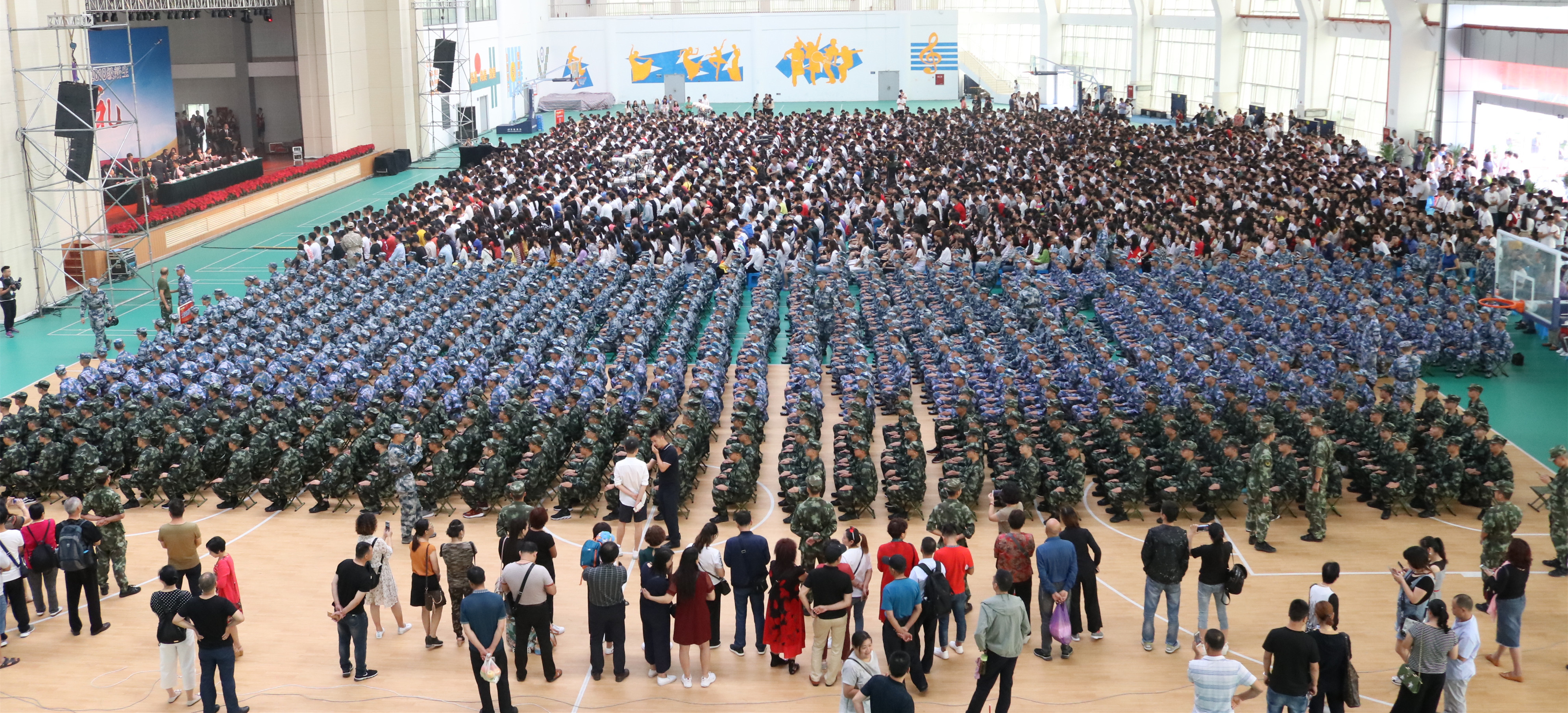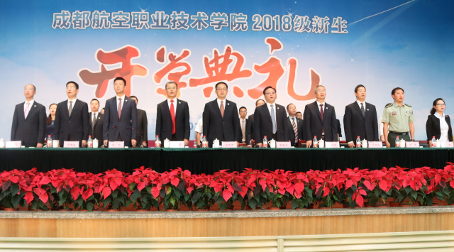 2018年9月8日,成都航院2018级新生开学典礼在文体馆隆重举行。学校党委书记杨建国、校长张蕴启、副书记兼副校长陈玉华、副校长刘建超、纪委书记武智慧出席典礼,副校长熊熙主持典礼。学校党政办、教务处、学工部、招就处等相关职能部门负责人和各二级学院院长、党总支书记、老师以及4122名新生参加典礼。