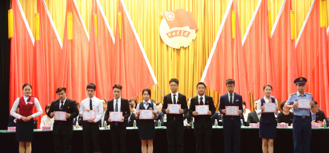 校团委委员王艺义老师宣读了《关于表彰成都航院2017-2018年度共青团工作先进集体和个人的决定》,校团委委员范豫鲁老师宣读了《关于表彰成都航院2017-2018年度青年志愿者、社会实践“三下乡”活动先进集体和个人的决定》。主席台就座的各位领导向获得“青年志愿者先进集体”、“先进团支部”、“优秀团员、“优秀团干部”、“优秀青年志愿者”、“社会实践优秀个人”荣誉称号的先进组织和个人代表颁发奖状。受表彰的学生文鹏作为学生代表发言。
