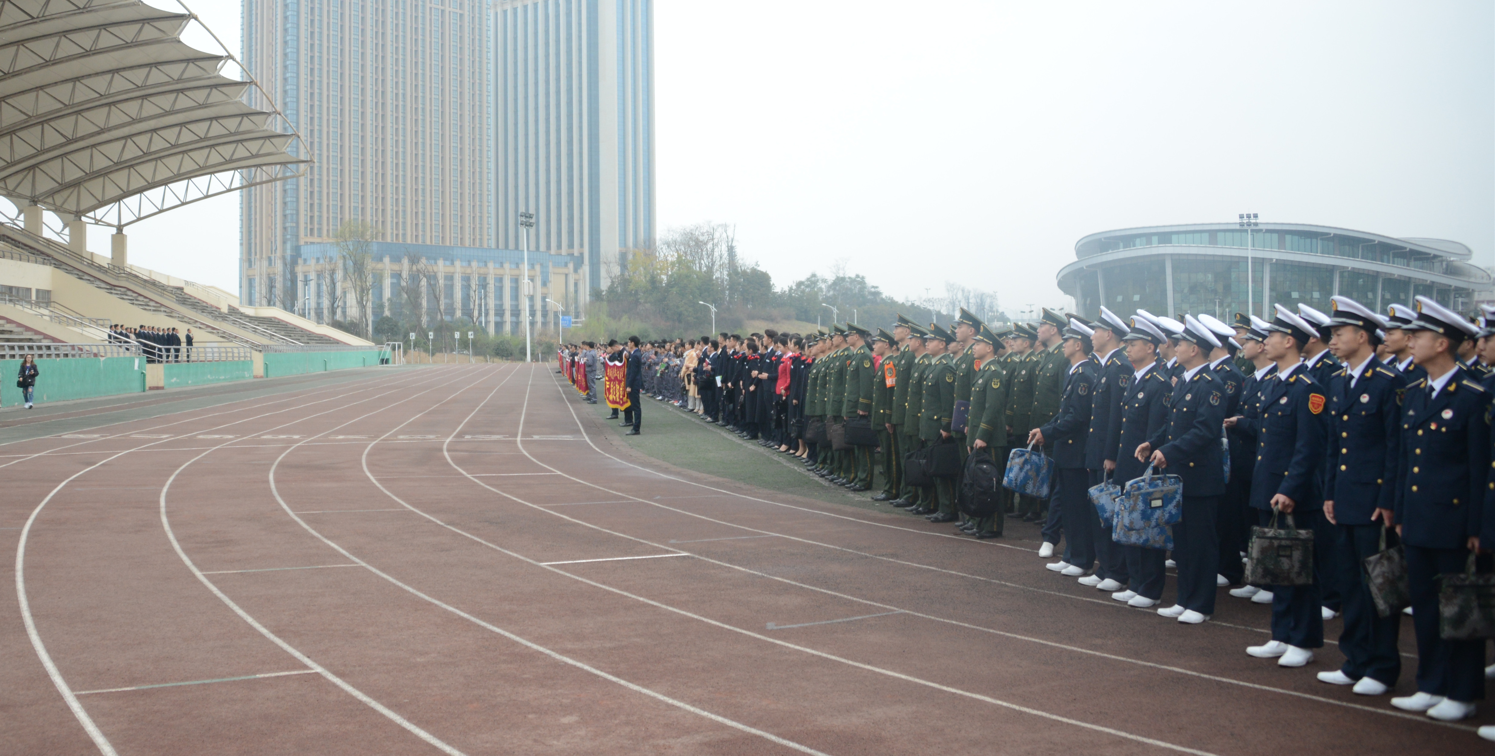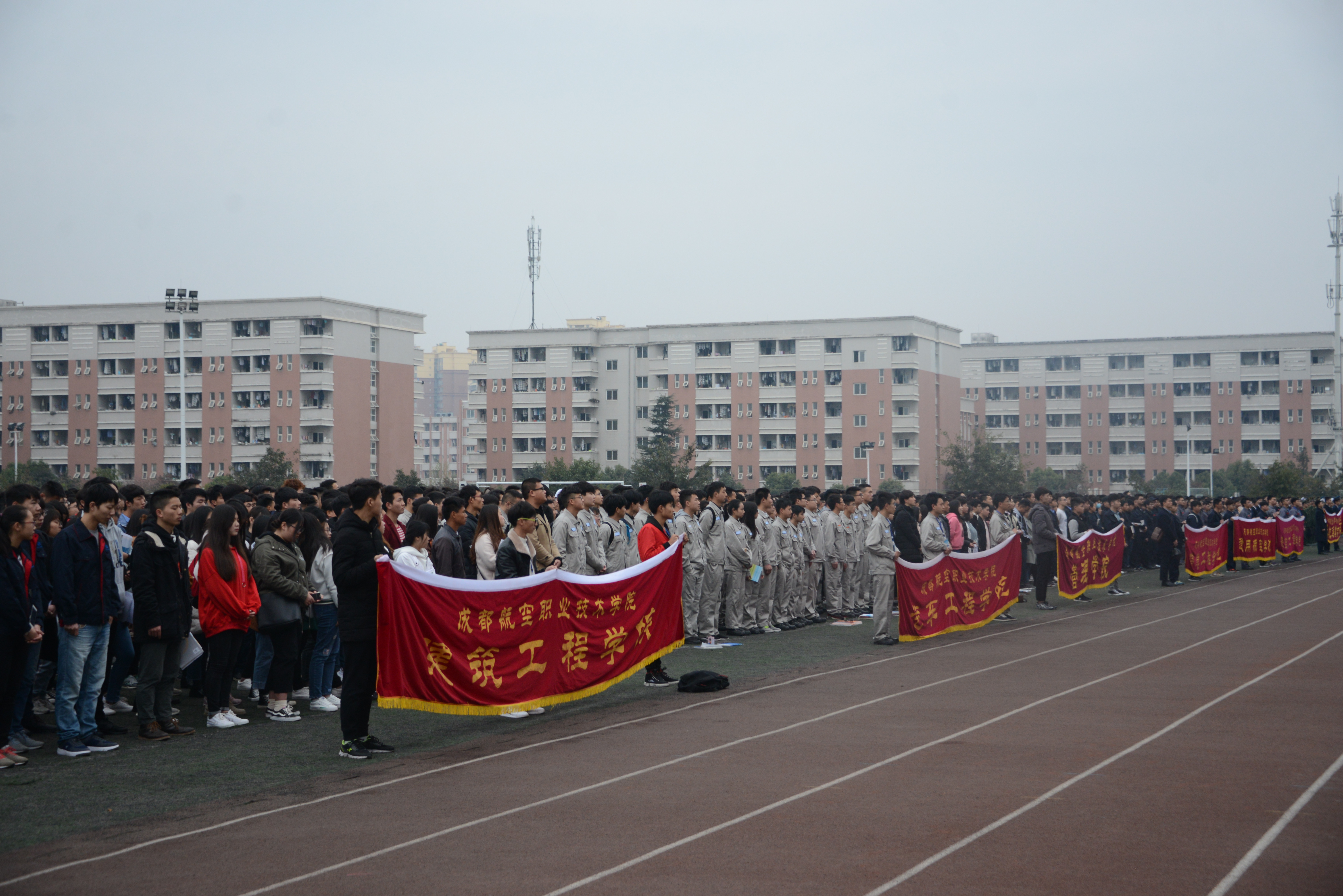 各二级学院分管学生工作领导、全校辅导员老师以及2016级和2017级全体学生参加升旗仪式