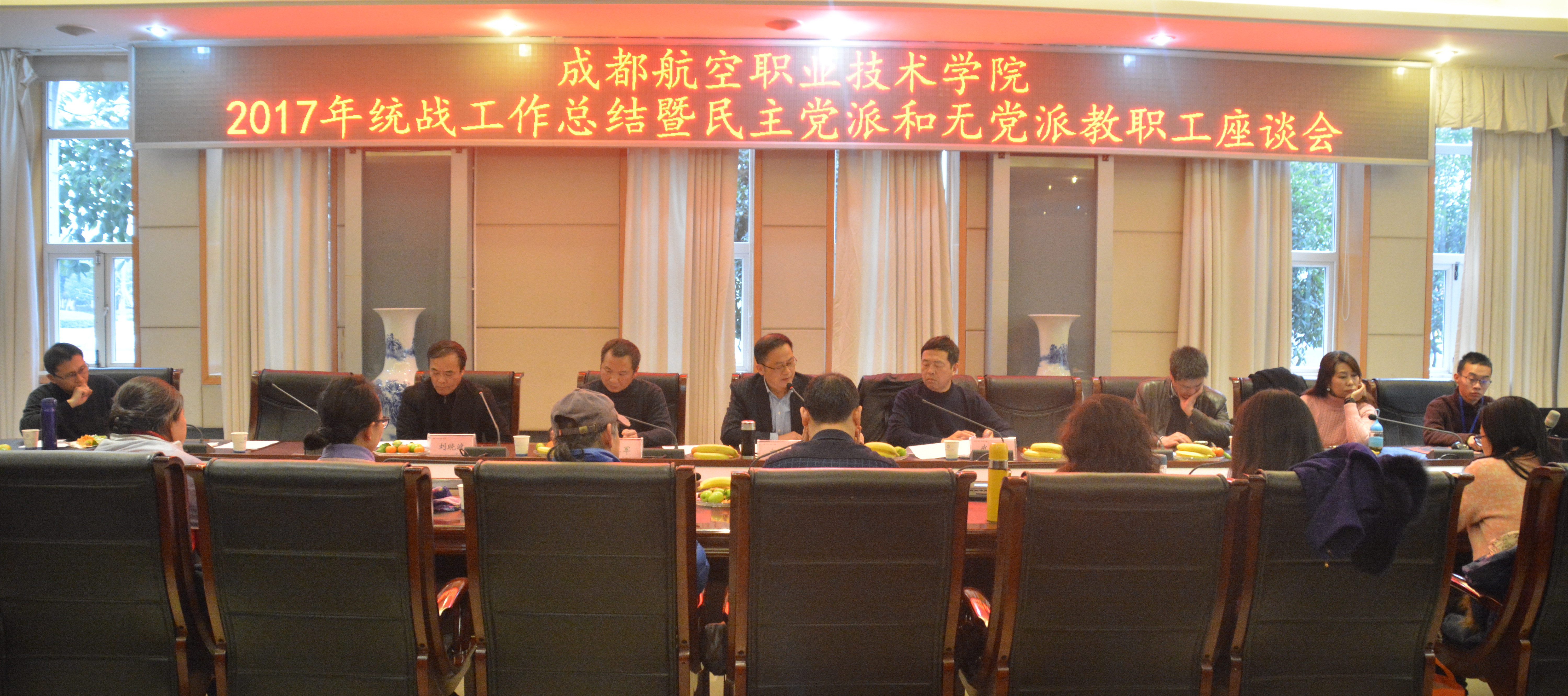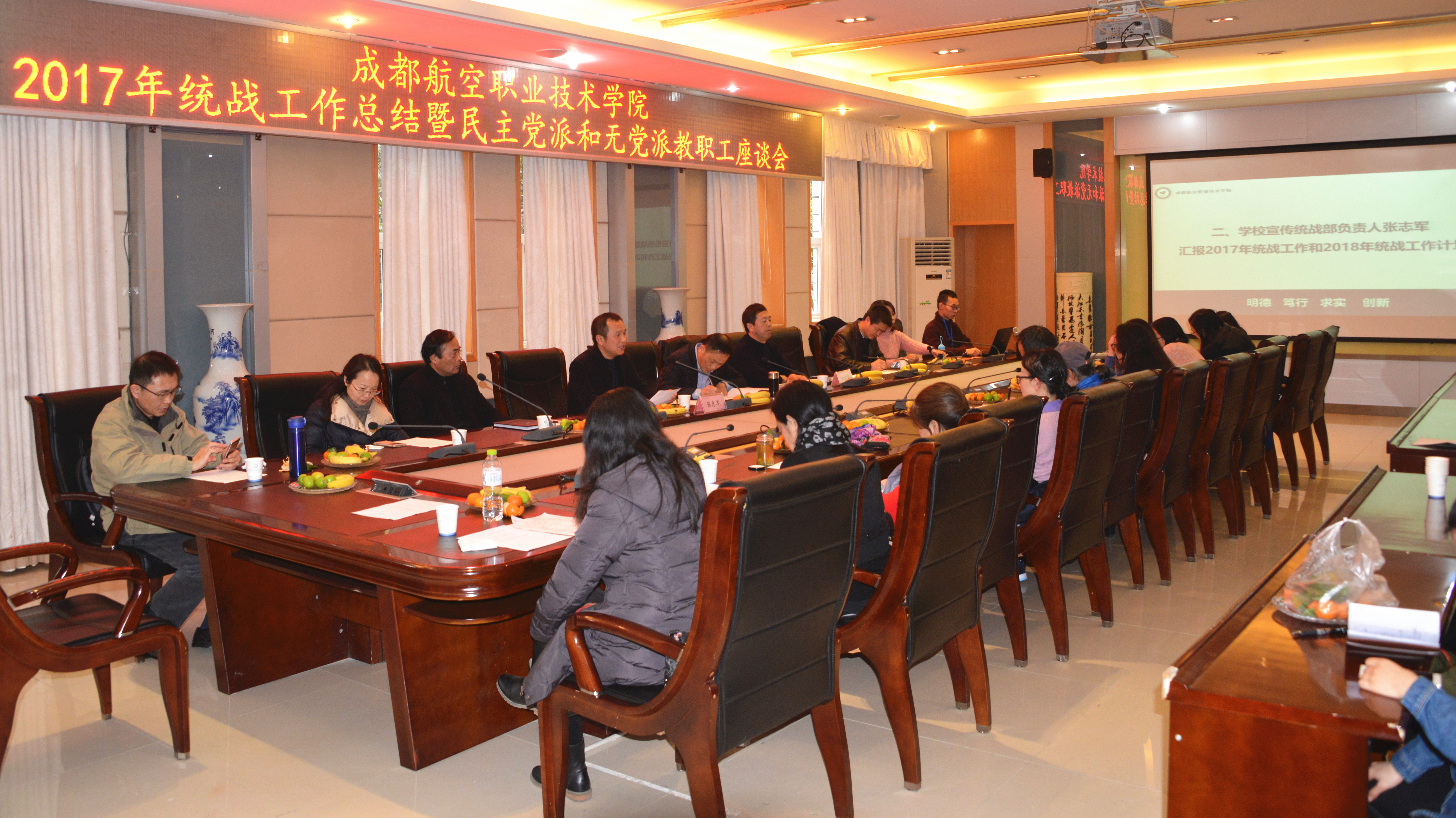 2018年1月3日,学校召开“新时代 新征程”2017年统战工作总结暨民主党派和无党派教职工座谈会,总结学校2017年统战工作成效,科学规划2018年统战工作,充分听取党外教职工对学校工作的意见和建议。
