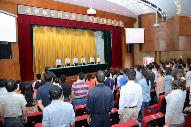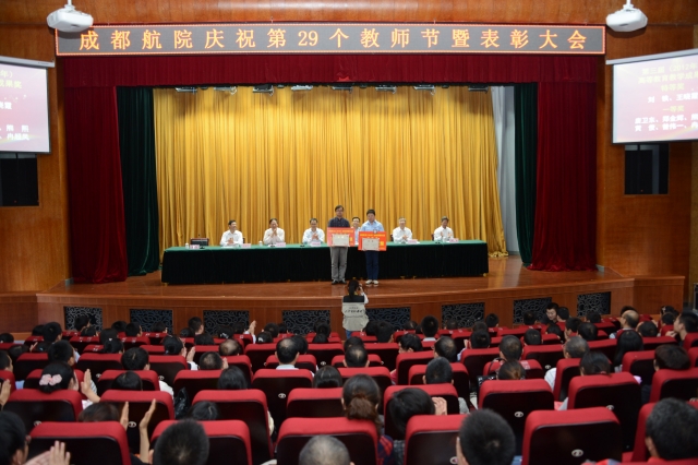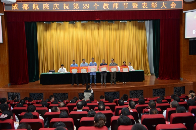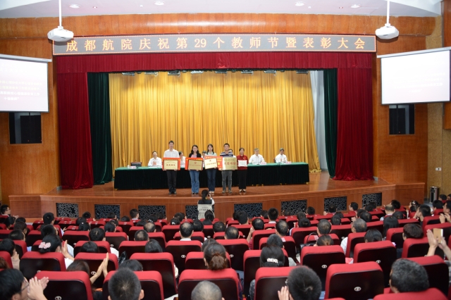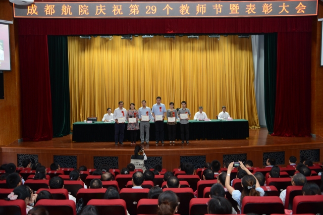 随后,王德位同志宣读了表彰决定。学院领导分别为受表彰的先进集体和个人进行了颁奖。其中,航空电子工程系老师曾伟一获得“四川省优秀教师”的光荣称号。学院第三届(2012年)高等教育教学成果奖特等奖由刘铁等7人,王晓霞等19人获得。孟兵老师等9人获得2011-2013年度学院“优秀青年教师”称号;李培书老师等12人获得2012—2013学年“优秀指导教师” 称号;