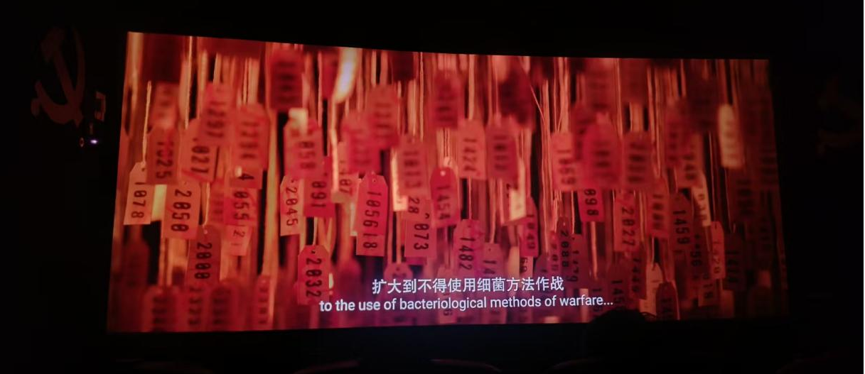 党支部书记黄芮作为活动主持人对活动背景作介绍,引导同学们肃穆观影。影片通过大量史实影像与真实场景再现,系统揭露了侵华日军第七三一部队在二战期间实施活体实验、细菌战等反人类罪行。观影过程中,全场肃穆凝重。面对一幕幕残酷的历史画面,一声声惨烈的嘶吼,许多同学眼眶湿润,深受触动,深感和平的来之不易与民族自强的时代意义。