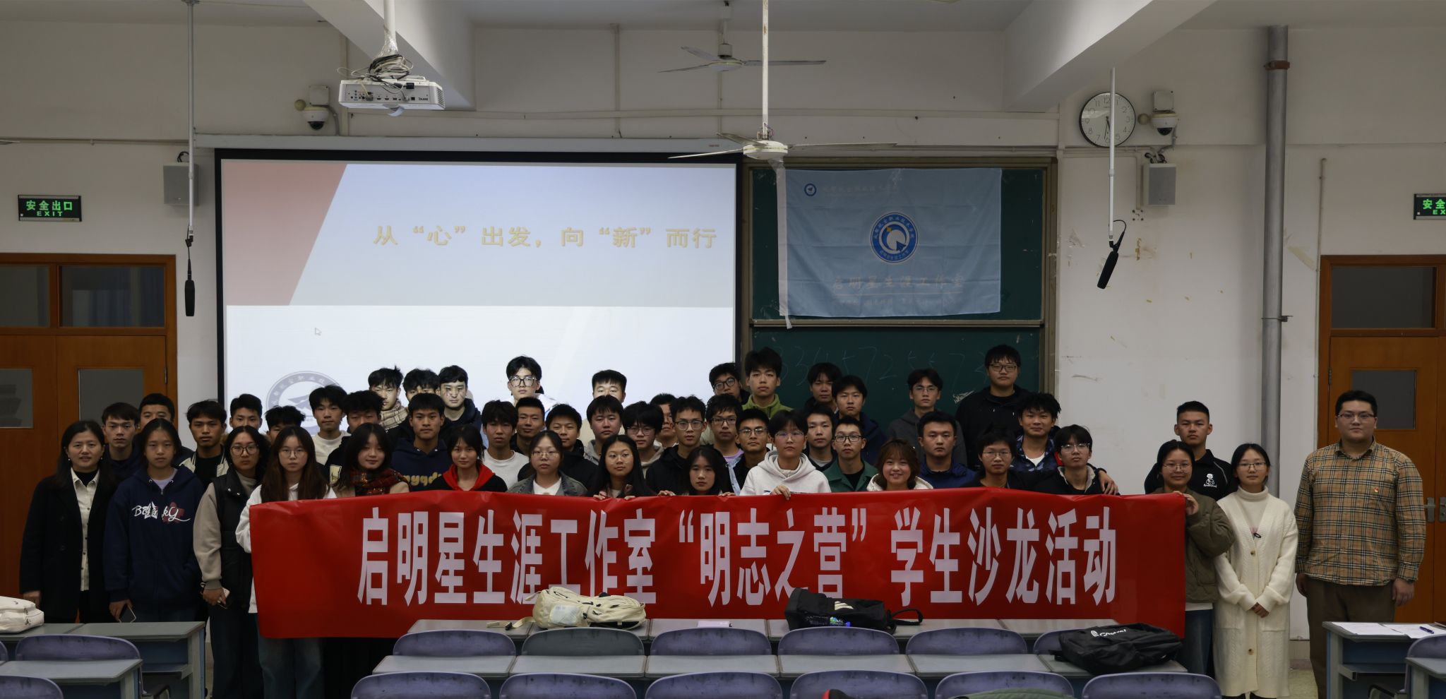 为引导学生树立正确的成才观、就业观,科学规划大学生涯,值此我校第三届职业规划大赛校赛举办之际,2025年11月11日下午,启明星生涯工作室于尚学楼304教室顺利开展了第七期“明志之营”学生沙龙活动。本次活动邀请到优秀校友、原校团委学生副书记肖游思重返母校,以《从“心”而行,向“新”出发》为主题,面向在场同学倾情分享了他的职业探索历程与个人成长感悟。工作室主持人虞剑英老师及各学院学生代表共同参与了本次活动。