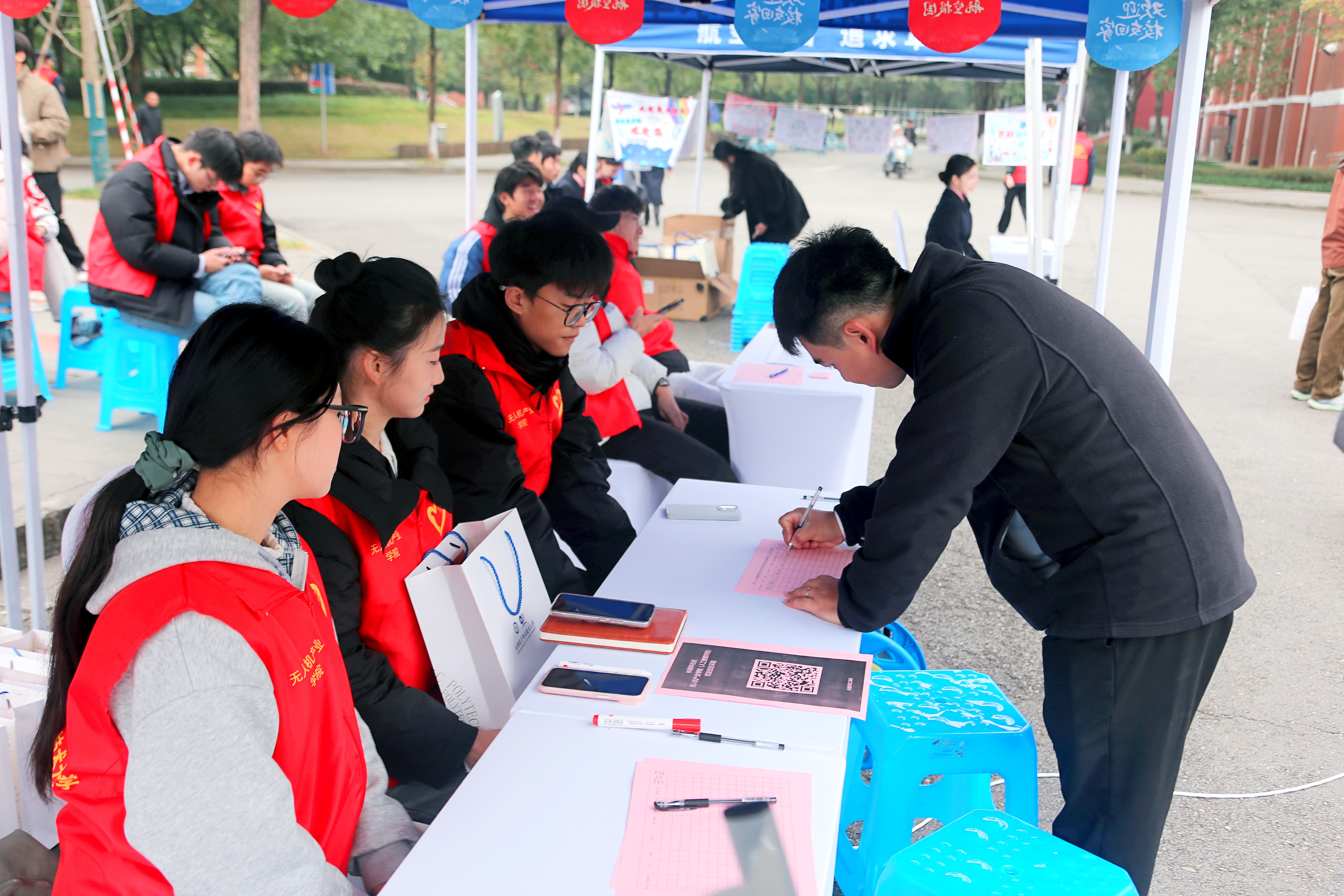 栉风沐雨六十载,春华秋实满庭芬芳。为更好地服务校友返校,在学校党委的坚强领导下,12月5日至6日,学院提前谋划,精心准备,举办了校友返校系列活动,同邀校友共览学院发展。12月6日一早,学院在图书馆广场前设立校友接待站,学生志愿者一对一协助校友办理校友资料申领、校友访谈问卷填写、随行参观校园、校园集章打卡等。校友们在志愿者引导下,依次穿过布满气球和彩旗的红毯、在签名打卡墙上留下姓名,分享母校60岁生日的喜悦。