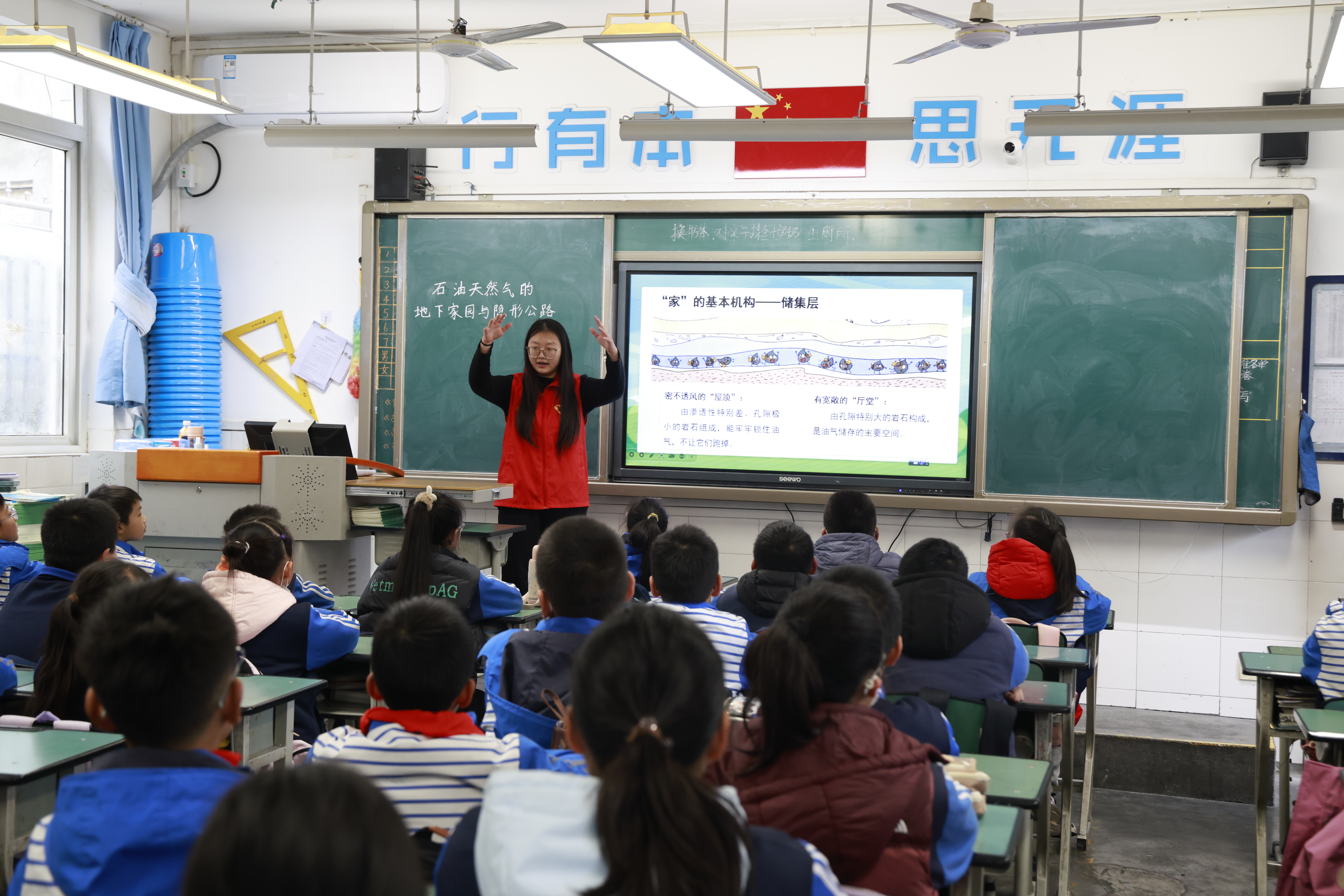 成都航空职业技术大学“跟党走就队”志愿服务队志愿团队走进龙泉四小,以“管道保护”为主题开展了一场能源安全科普宣讲活动。为契合小学生的认知特点,志愿团队创新采用“趣味动画+立体模型+互动问答”的多元化形式,围绕石油天然气储藏结构、管道运输原理及“西气东输”工程三大核心内容展开讲解。活动中,分层立体模型直观拆解了油气地下储藏形态与防护要点,让抽象知识具象化;透明管道演示装置动态还原了油气从产地到用户的完整运输流程,清晰呈现管道运输优势;趣味短视频则生动解读了“西气东输”工程的战略意义,以及管道保护与日常生活、国家能源安全的紧密联系,为孩子们打造了一堂生动实用的科普课程。