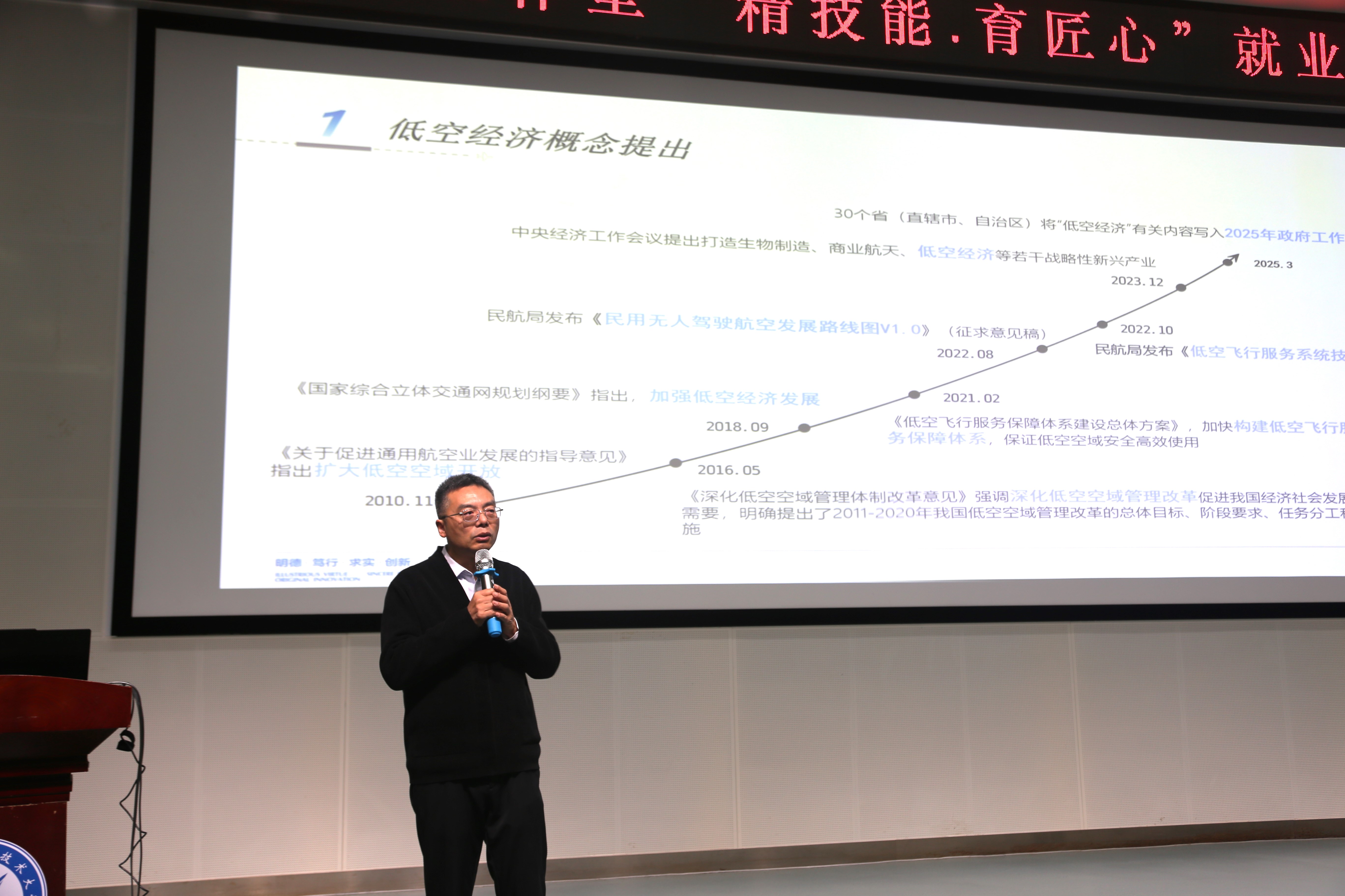 为引导学生把握新兴产业发展趋势,科学规划职业未来,12月16日,无人机产业学院在博学楼报告厅举办“青春就业公开课”。活动特邀无人机产业学院(人工智能学院)行政负责人、成都无人机产业协会秘书长,国家“万人计划”教学名师何先定教授作题为“低空经济创新发展的要素体系、协同逻辑及发展路径”专题报告。无人机应用技术、无人机系统应用技术、测绘技术应用等专业500余名学生聆听讲座。