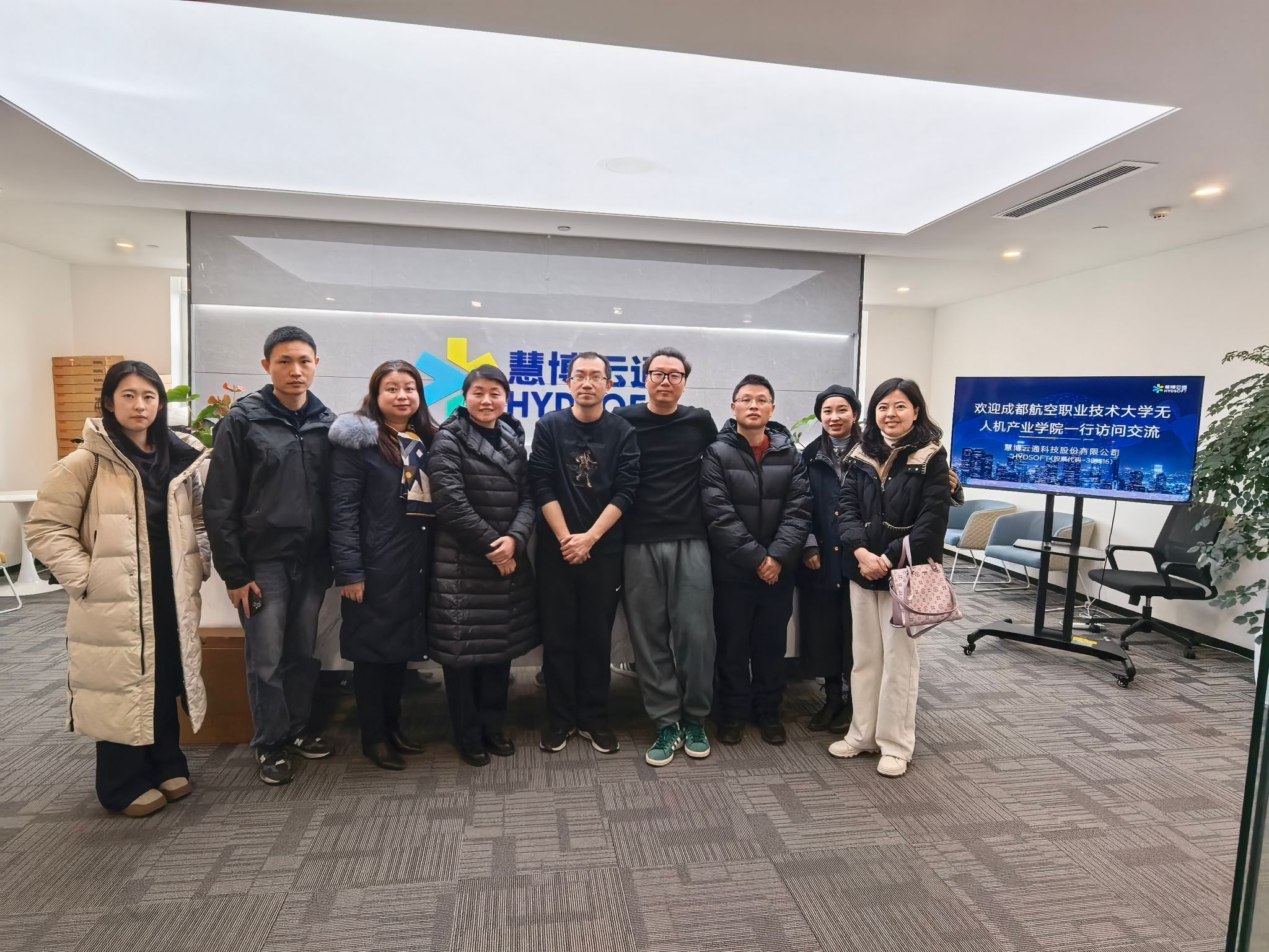 为持续深化校企协同育人机制,精准对接行业技术发展及用人需求,成航无人机产业学院充分利用寒假时间深入开展“访企拓岗促就业”行动。1月26日上午,学院学生分管工作负责人孔萍、软件技术专业负责人林琳带领软件技术专业全体教师及学院就业负责教师,前往慧博云通科技股份有限公司成都分公司(以下简称为慧博云通)开展调研交流。