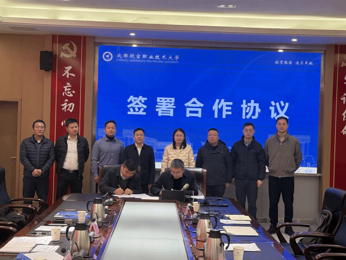2026年2月4日上午,中铁科学研究院集团有限公司工程公司与成都航空职业技术大学校企合作签约仪式暨轨道交通智慧巡检项目推进会在我校德胜楼第三会议室顺利召开。中铁科学研究院集团有限公司副总经理吴德胜,中铁科学研究院集团工程公司总经理周忠云、副总经理肖江河,国投科技创新有限公司成都基地中心主任陈席言,中铁科学研究院集团工程公司经营部部长杨敏。学校党委常委、副校长许丽佳出席签约仪式,无人机产业学院、校企合作处、信息化建设与管理处相关负责人参会。