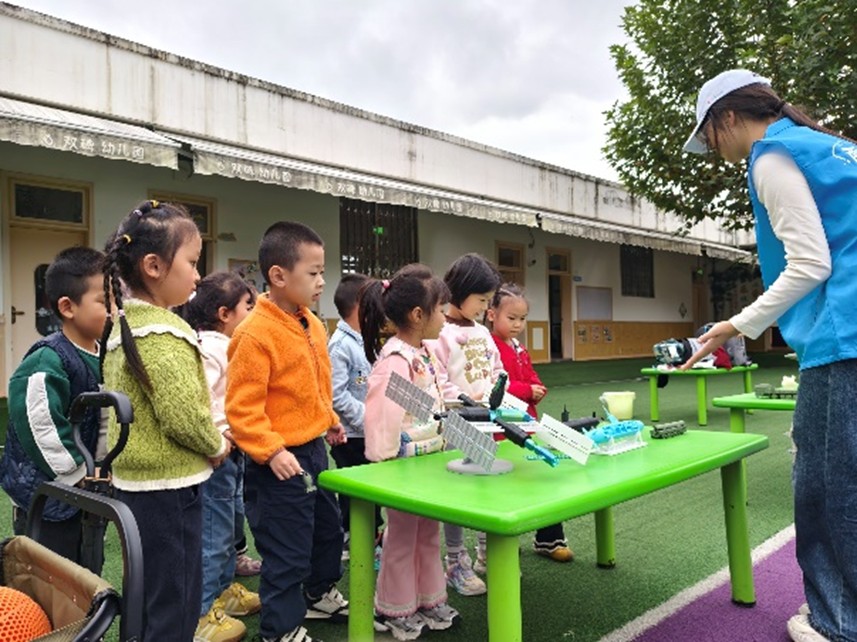 2025年10月21日,成都航空职业技术大学“红翼领航,核力全开”志愿宣讲团,走进成都市龙泉驿区柏合幼儿园双碑教学点开展“两弹一星”精神主题宣讲。这场以“童语讲精神、模型启智慧、游戏筑梦想”为特色的活动,将“两弹一星”精神转化为幼儿可感可知的体验,让爱国种子与科学梦想在童真岁月里同步扎根。