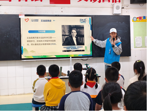 宣讲团成员以时间为脉络,通过珍贵影像资料与生动讲述,全景式呈现“两弹一星”从艰难研发到震撼成功的关键历程。重点聚焦王淦昌、郭永怀等科学家群体——王淦昌“我愿以身许国”的誓言穿透岁月,郭永怀在飞机失事瞬间用身体护住绝密文件的壮举,让青少年直观理解“自力更生、艰苦奋斗”的精神内核。现场通过“算盘推演数据”“戈壁荒滩攻坚”等细节,将抽象精神转化为可感知的“科学态度”,激发爱国情怀自然生长。