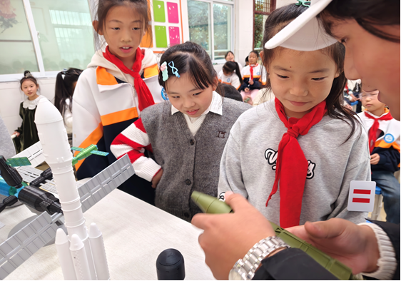 活动创新设置“知识快问快答”环节,围绕“两弹一星”关键时间节点、科学家姓名、重大突破事件等设置10道趣味问题,采用举手抢答形式。答对者获赠定制版“两弹一星”主题纪念徽章,实现“学玩结合”。现场氛围热烈,小学生们踊跃参与,在互动中深化对历史事件与精神内涵的理解。