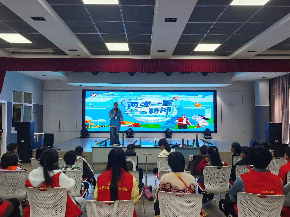 成都航空职业技术大学“红翼领航,核力全开”志愿宣讲团于11月16日走进黎明社区,针对社区小朋友开展“沉浸式宣讲+互动式体验”科普活动。团队紧扣青少年认知特点,将“两弹一星”历史与精神转化为鲜活体验,让红色基因在社区落地生根。
