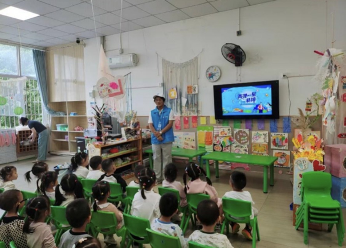 活动最后,宣讲团为每位小朋友都送上了一枚精致的导弹钥匙扣作为纪念,让这份科学与爱国的种子伴随他们成长。此次活动不仅是一次知识的传递,更是一次精神的洗礼,让“两弹一星”的精神在幼小心灵中生根发芽。