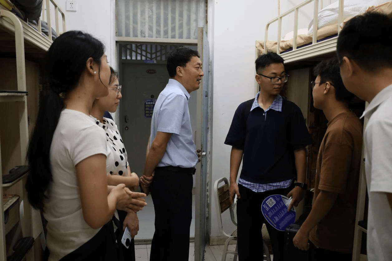 走进寝室,王阳合首先查看住宿环境,仔细询问新生是否习惯床铺设施、生活物资是否齐全,叮嘱大家有住宿问题及时向辅导员反馈。与新生交流时,他耐心倾听来自不同地区新生的入学感受,从行李整理、作息调整到校园生活规划,逐一给出细致建议。