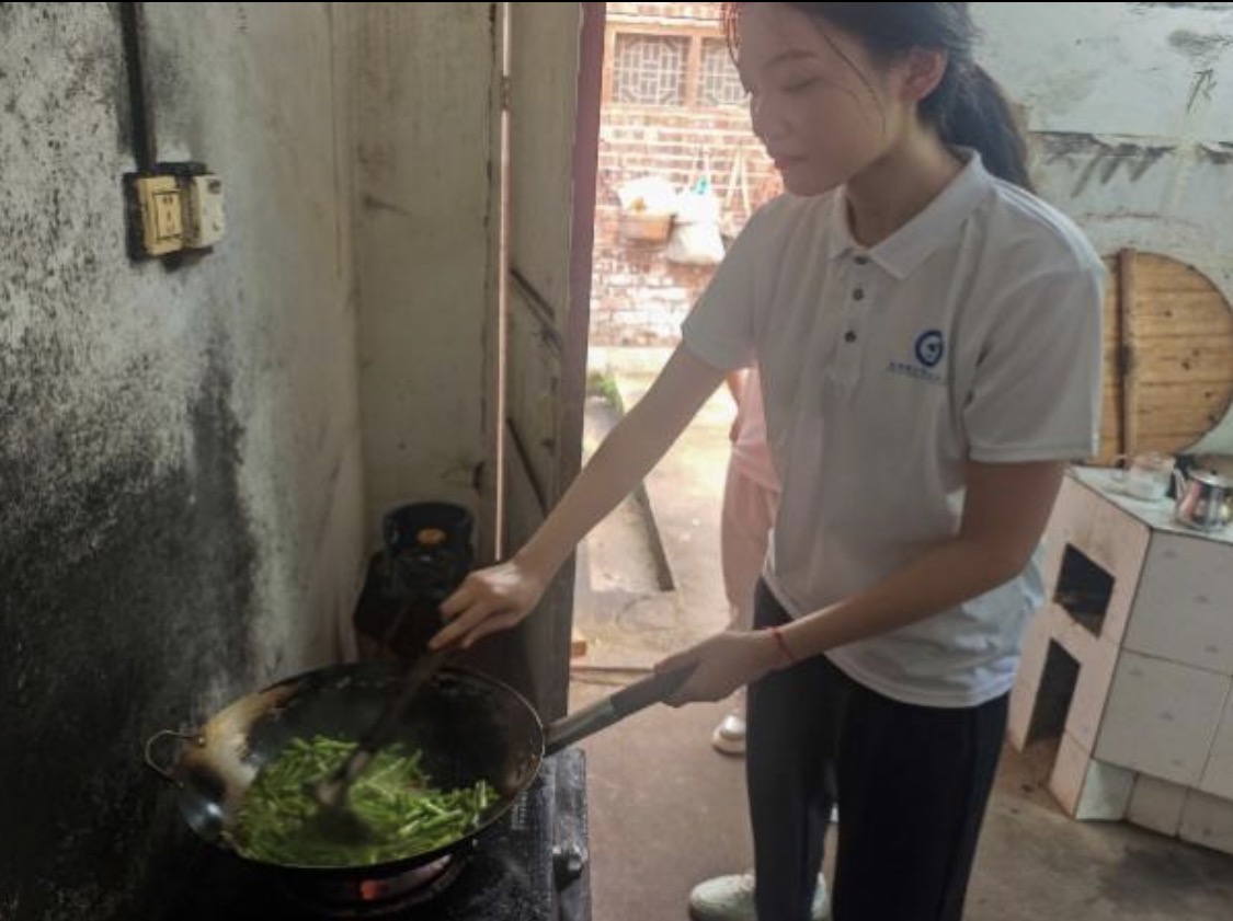 在老乡家的灶台前,土灶的烟火气混着饭菜香漫开来。我笨手笨脚地学着炒菜,火苗“噼啪”舔着锅底,把脸颊烘得暖暖的。老乡在一旁教我揉面,粗糙的手掌带着老茧,却把力道教得细致。下锅的豆角在沸水里翻滚,撒把自种的辣椒,淋上香油,一碗热豆角端上桌时,老乡笑得眼角堆起皱纹。这顿饭没有精致摆盘,却吃得出烟火里的实在,也品到了陌生人间递过来的暖意。——李晓钰
