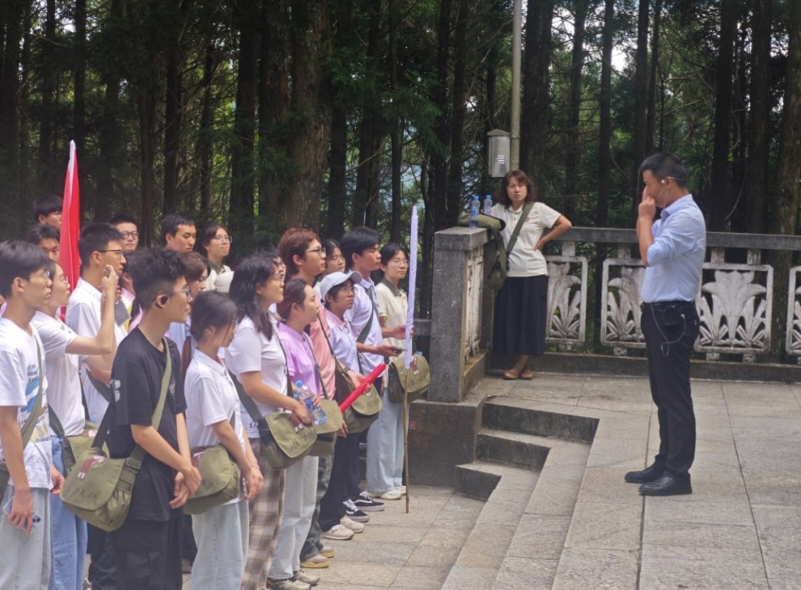 下午14:40,实践团抵达黄洋界哨口。立于昔日堑壕遗址之上,谢珍志老师为大家生动讲述了1928年黄洋界保卫战中以少胜多、依靠群众取得胜利的战斗历程。队员们远眺巍巍群山,仿佛仍能听见当年的隆隆炮声与呐喊,对“依靠群众、勇于胜利”的井冈山精神有了更加具象而深刻的体悟。