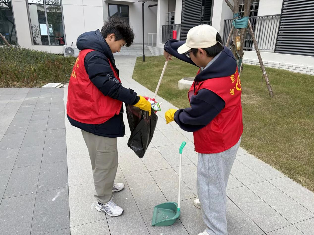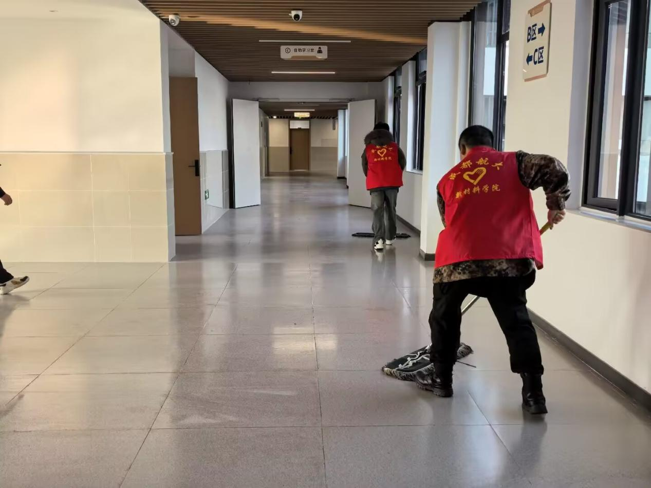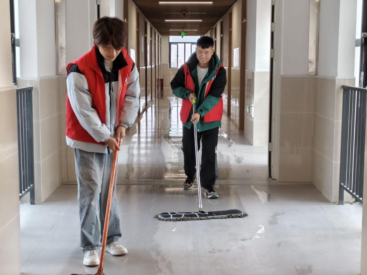 本次活动聚焦宿舍环境卫生,以整洁有序的校园面貌迎接校庆到来。活动当天,志愿者们身着统一志愿服装,手持清洁工具,以饱满的热情投入到劳动中。大家分工明确、配合默契,对寝室各楼层走廊、楼梯间、公共休闲区等区域进行了“地毯式”清理。同学们认真细致地清扫地面浮尘、捡拾杂物、擦拭扶手栏杆、整理公共区域物品摆放,不放过任何一个卫生死角。尽管天气寒冷,但志愿者们干劲十足,忙碌的身影成为新校区一道亮丽的风景线。