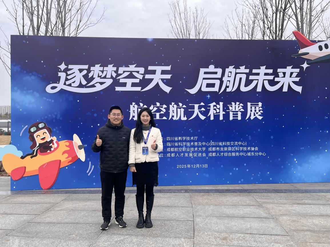 2025年12月13日,在四川省科学技术厅指导下,由由四川省科学技术厅指导,四川省科学技术普及中心(四川省科技交流中心)主办,成都航空职业技术大学、龙泉驿区科学技术协会联合承办,成都人才综合服务中心城东分中心、东安街道办事处、成都经开文旅公司协办的的“逐梦空天·启航未来”航空航天科普展于东安湖公园神鸟广场成功举办。