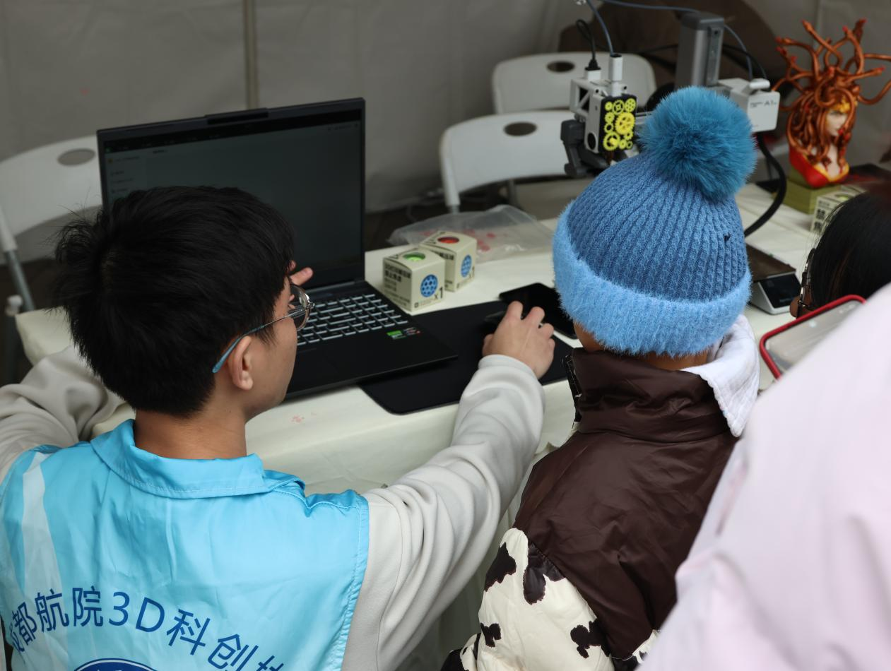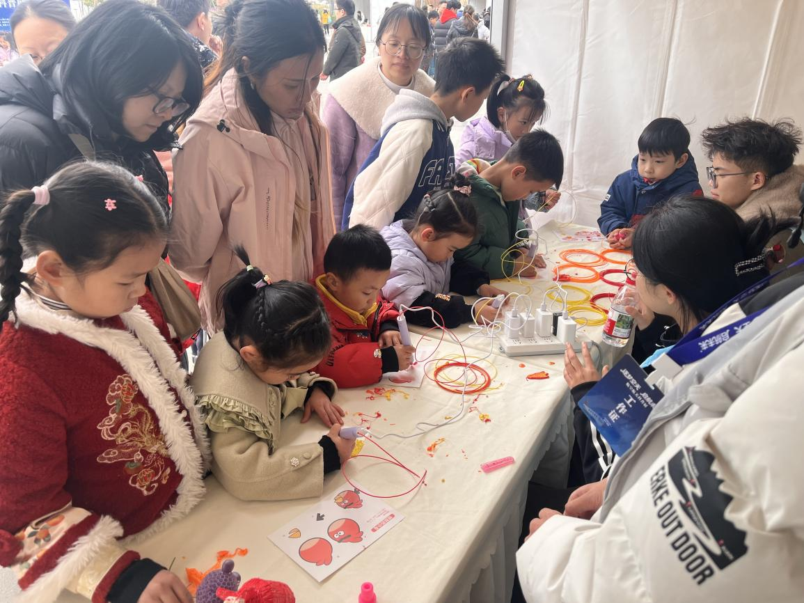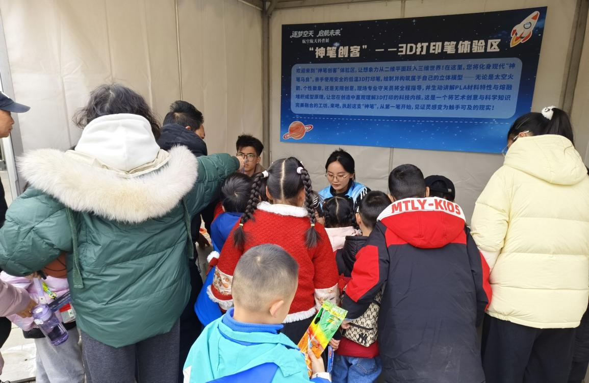 这里是创意与科技交融的活力工坊。参与者手持安全低温3D打印笔,将二维构想化为航天器、徽章等三维作品,亲身体验从设计到成型的全过程。在协会成员的指导下,观众在创作中理解材料特性与成型原理,实现“边做边学”,真切感受科技如何让想象照进现实。