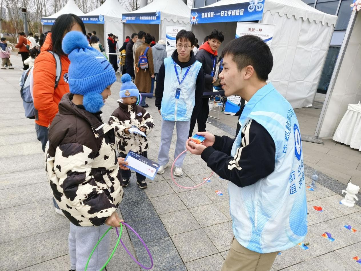 在学院党组织的统筹指导下,本次科普展由指导教师门正兴、梁霞带队,依托3D科创协会与蒲公英航空科普志愿者协会,组织10名学生党员及积极分子共同实施。展区紧扣航空航天主题与先进制造技术,围绕“红色铸魂、科技启智、实践育人”理念,创新设置了四大体验板块,将党性教育、科学传播与创新实践有机结合,为公众搭建起一个可观、可触、可感的沉浸式科普平台。
