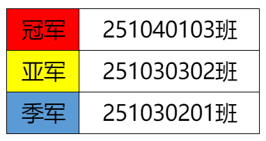 决赛现场气氛热烈,双方球员迅速进入状态,攻防转换频繁,比分持续紧咬。251040103班依靠团队配合与稳定的投篮逐渐建立优势,251030302班也多次通过战术调整展开反击。整场比赛精彩激烈,展现出良好的竞技风貌。最终,251040103班以55:44战胜对手,夺得本届篮球赛冠军。